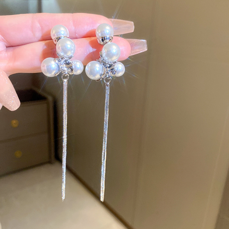 white-5mm silver needle freshwater pearl ear studs