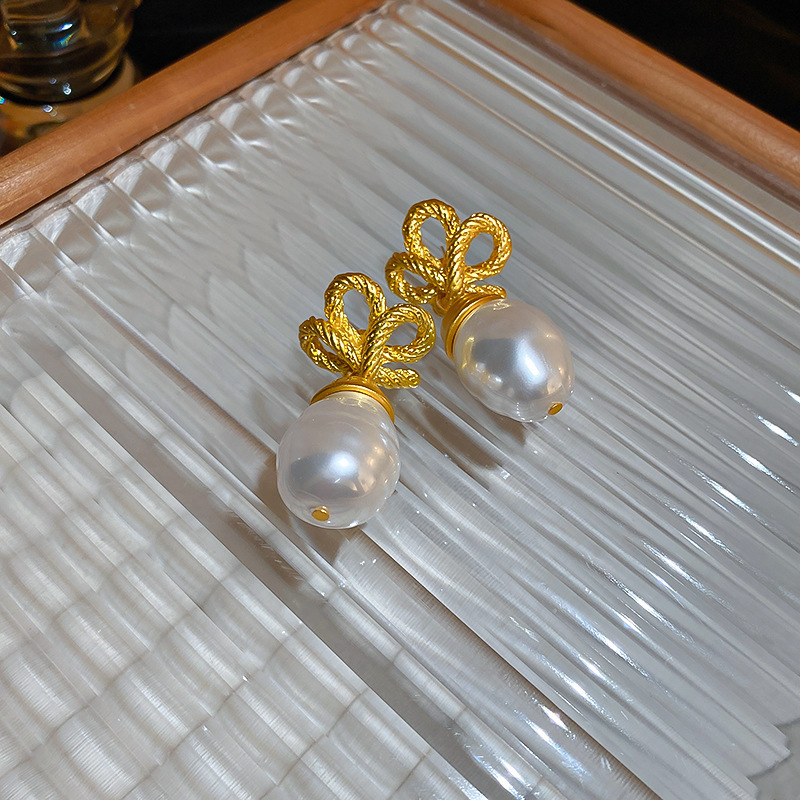 silver needle—real gold-plated round pearl earrings