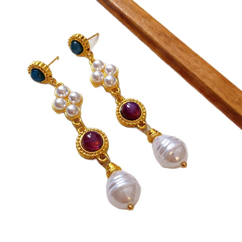 1# silver needle-medieval rhinestone pearl ear studs