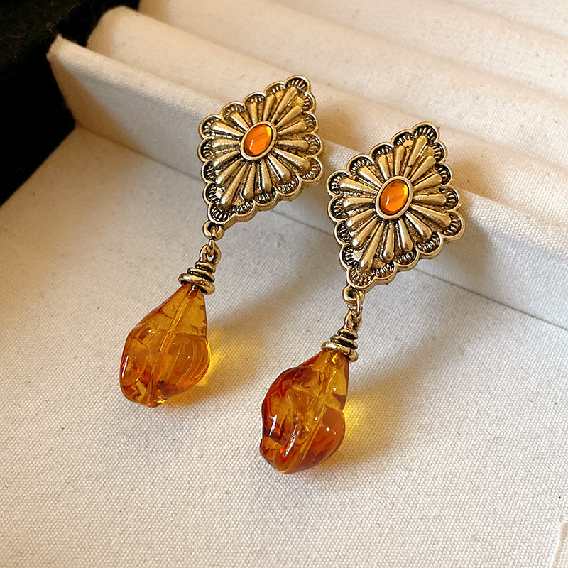 41# silver needle-tigereye lace stud earrings (real gold plating)