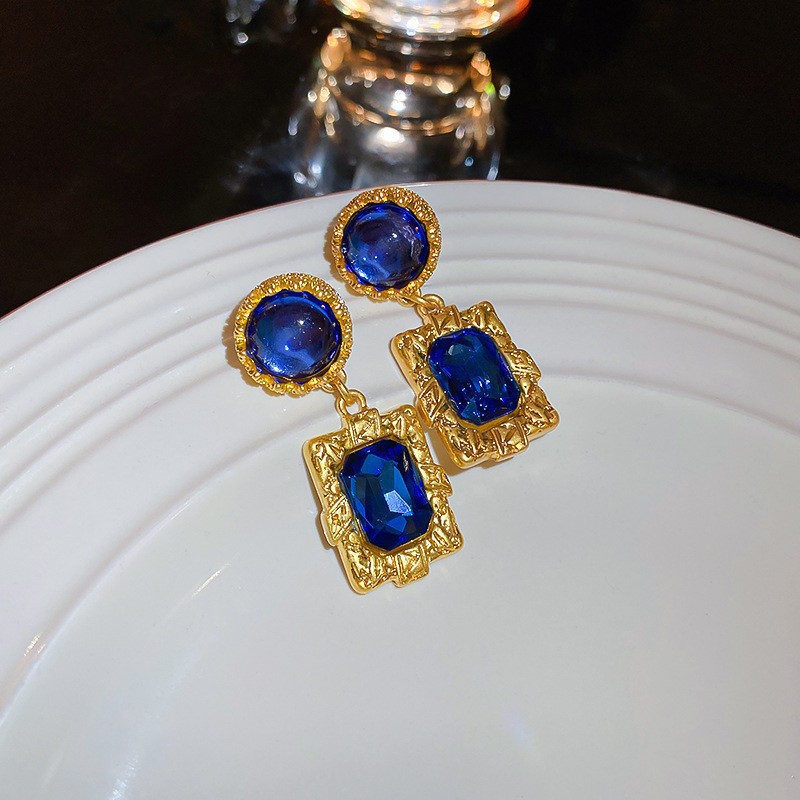 47# ear clip-blue diamond crystal water drop