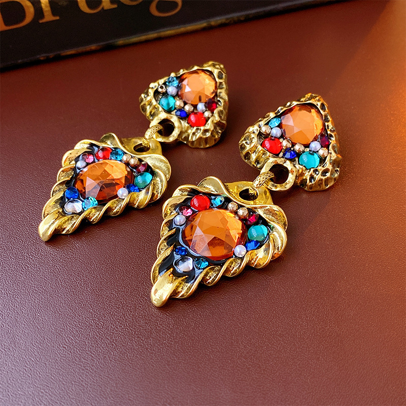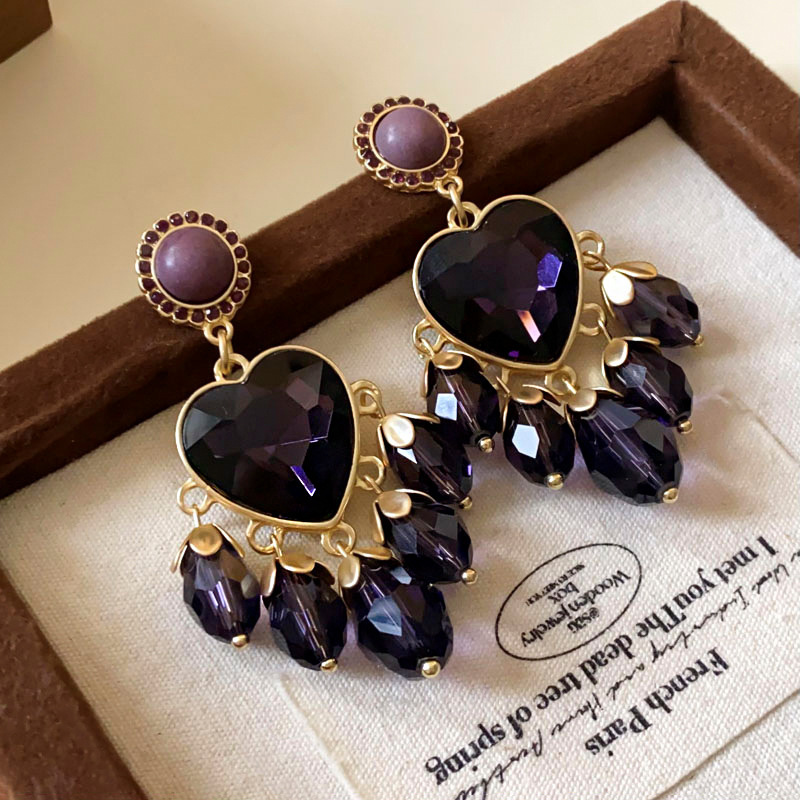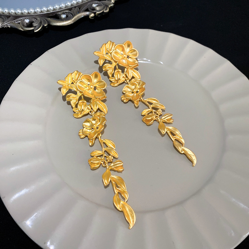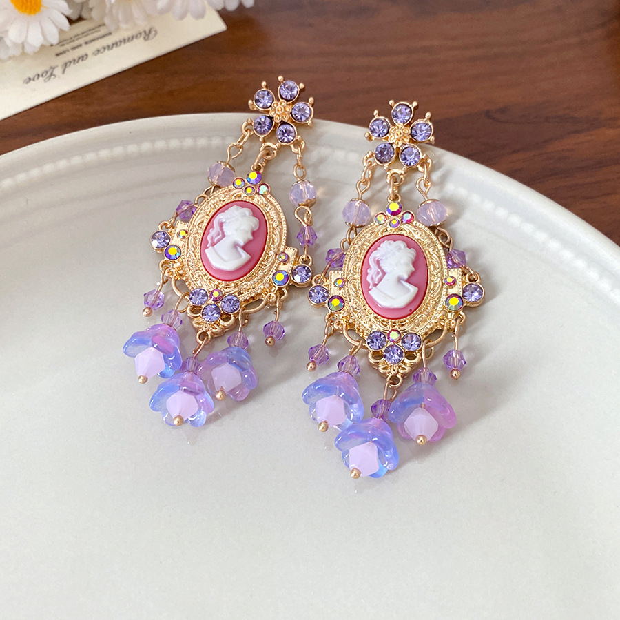 2# stud earrings-diamond flower portrait tassel