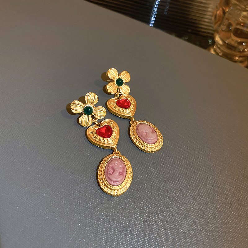 19# silver needle-diamond portrait love cross stud earrings