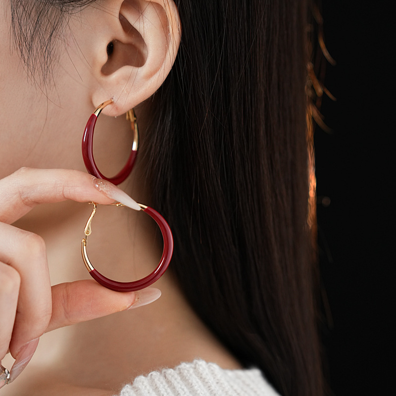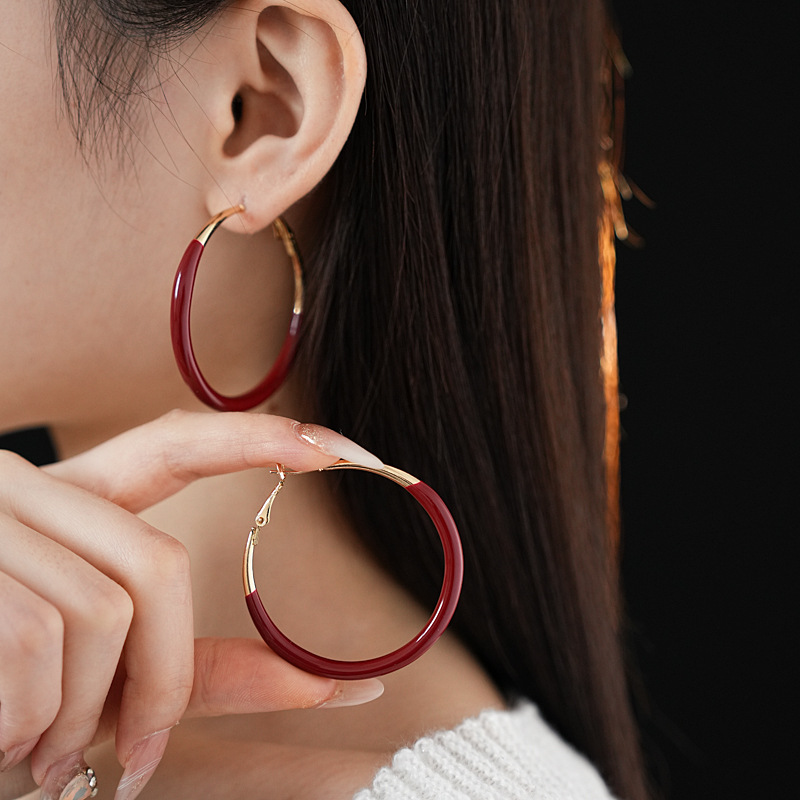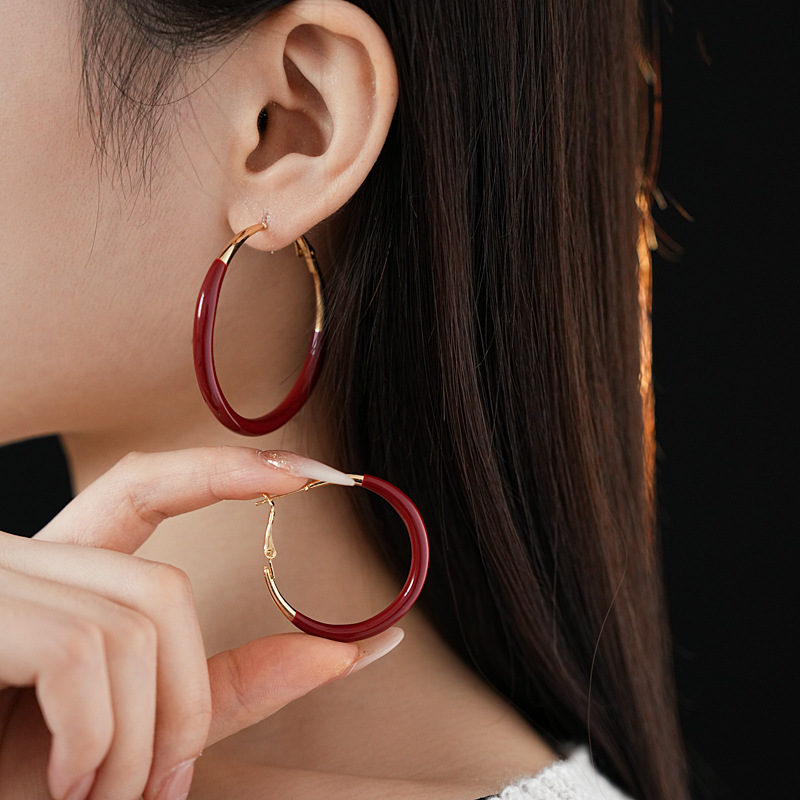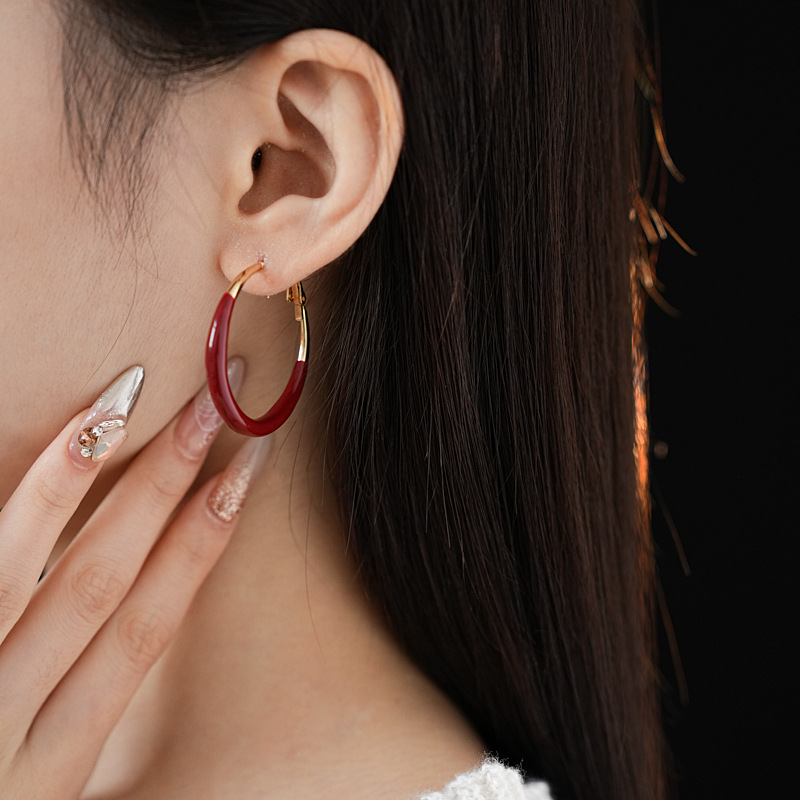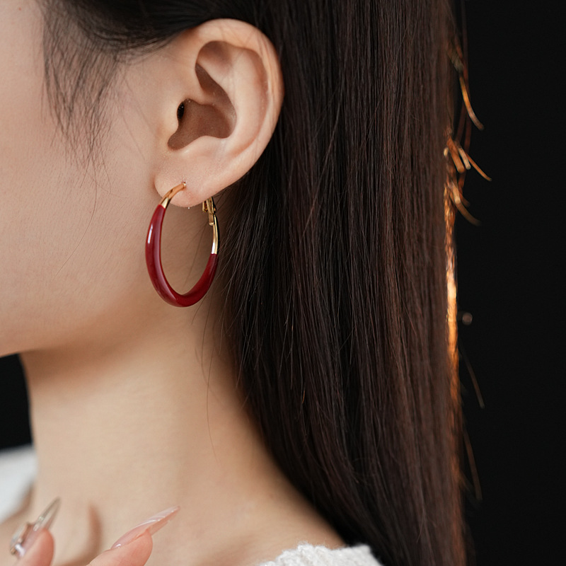 #1 silver needle-golden-inner diameter 43mm ear ring