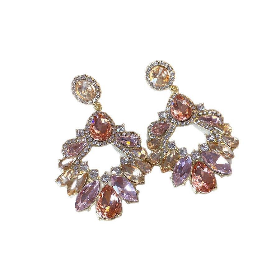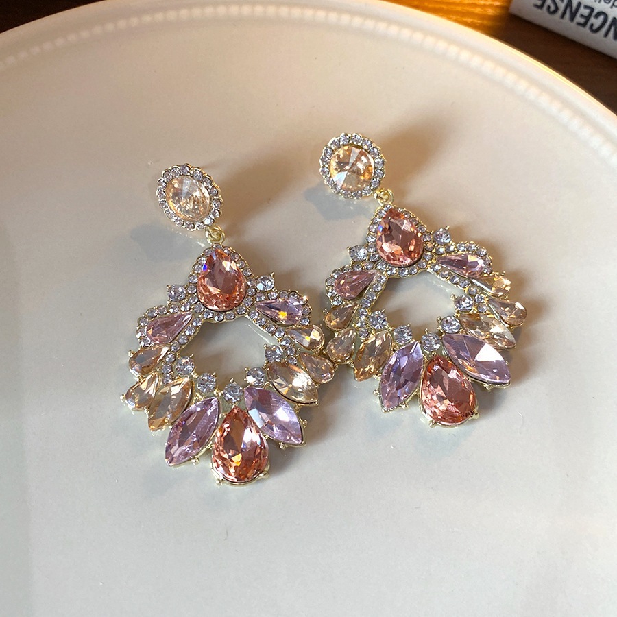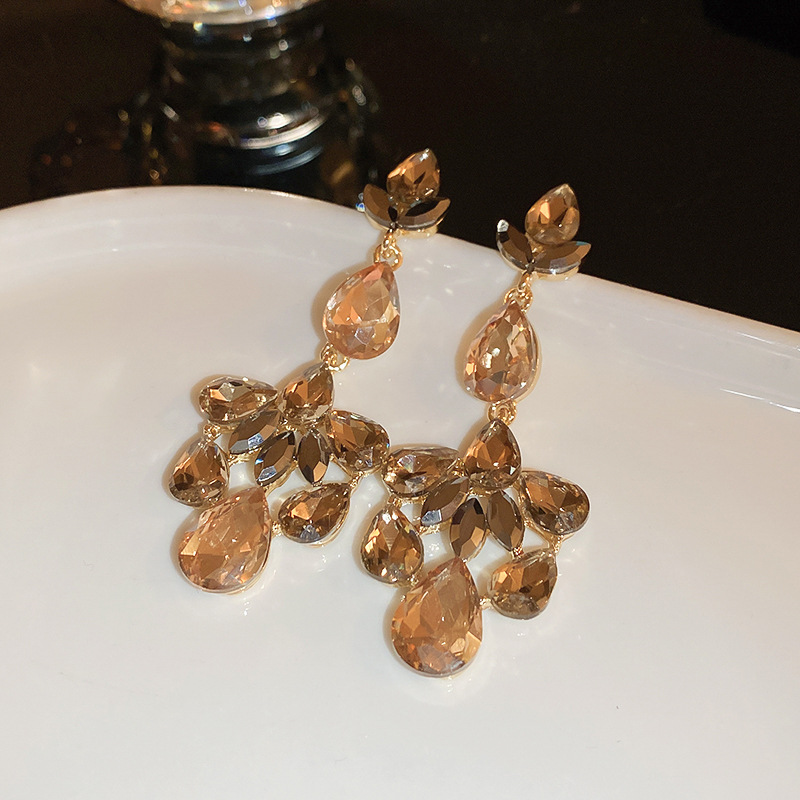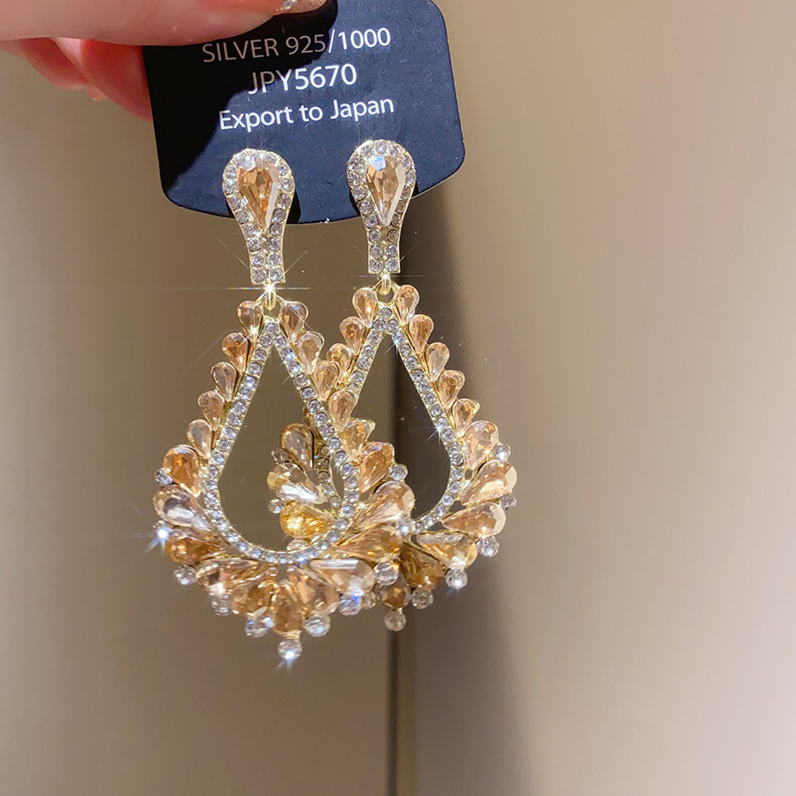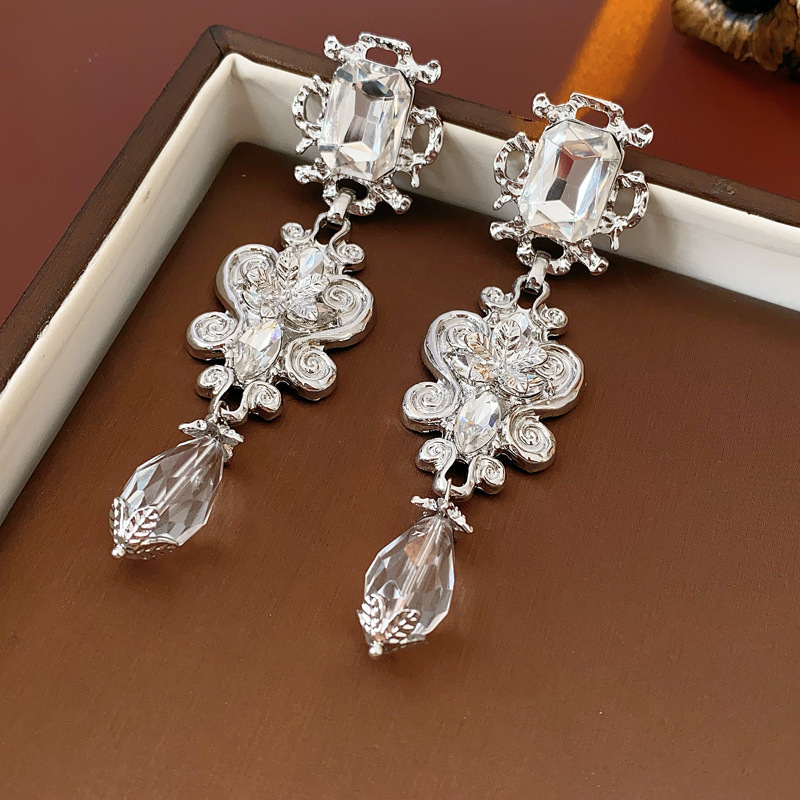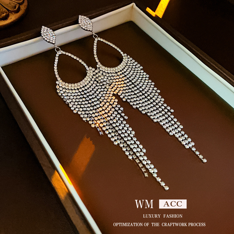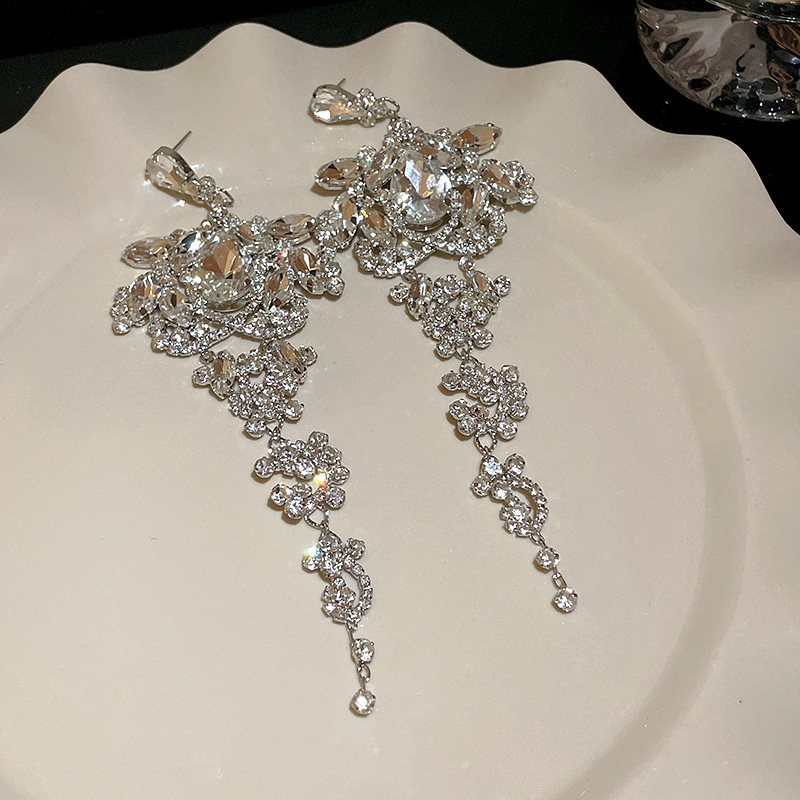 14# silver needle-exaggerated diamond oval water drop tassel ear studs