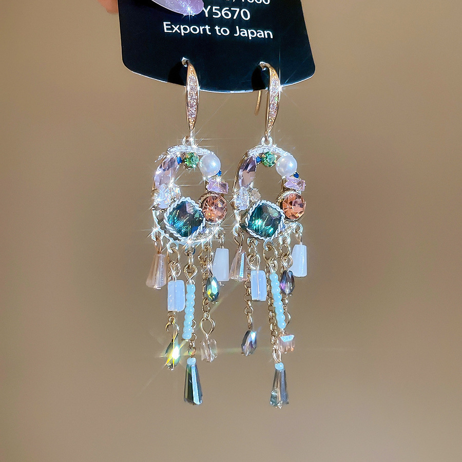 23# ear hook-rhinestone zircon square round pearl glass tassel