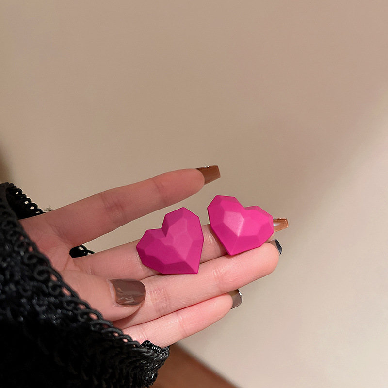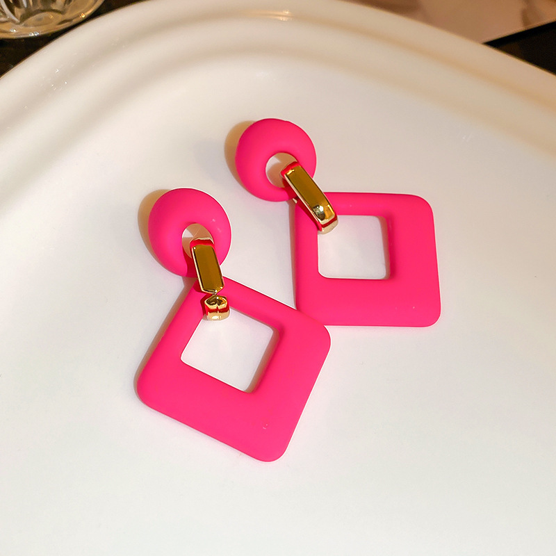 rose red-silver needle candy color rhombic ear studs