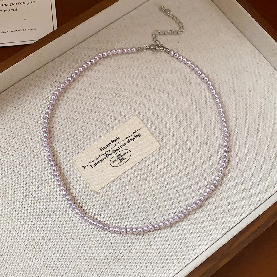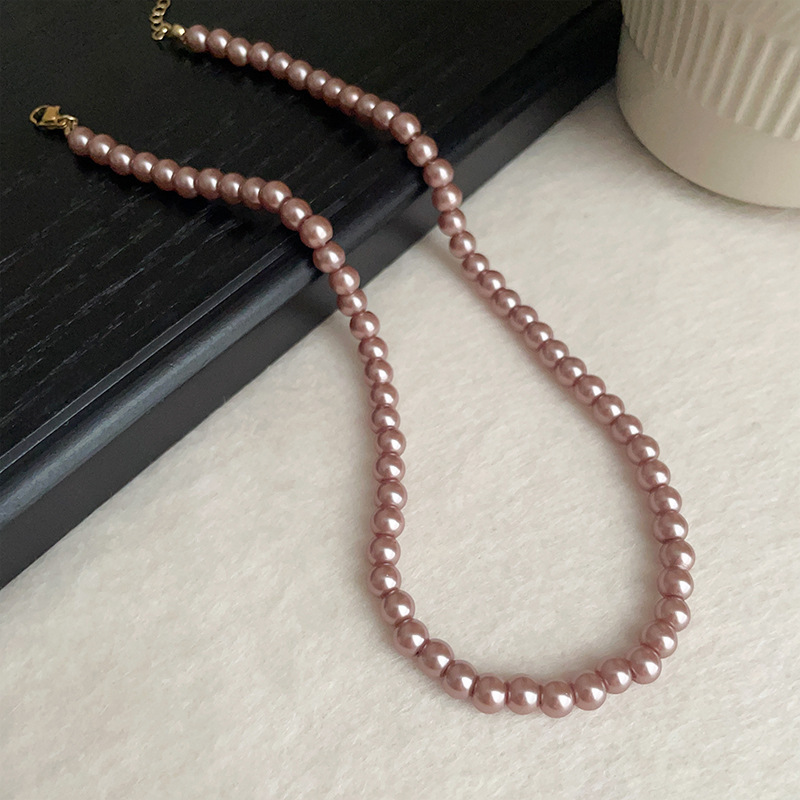 titanium steel manta rose pearl necklace pink-4mm
