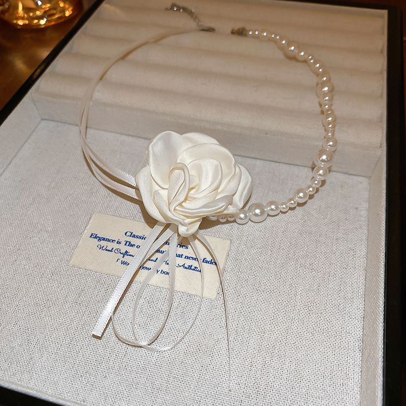 ribbon pearl flower necklace