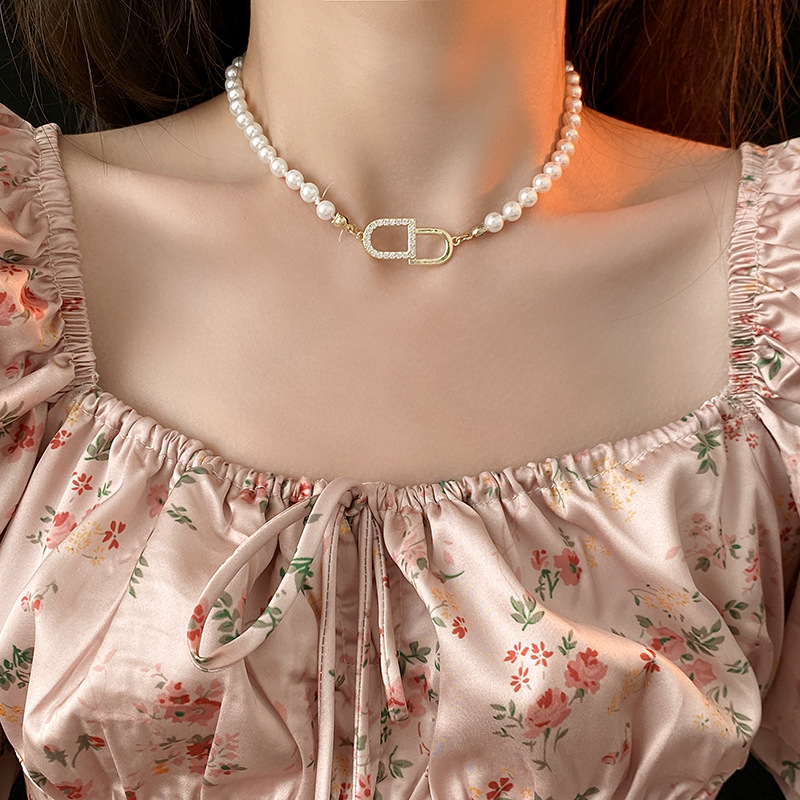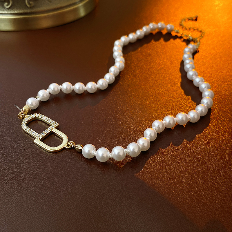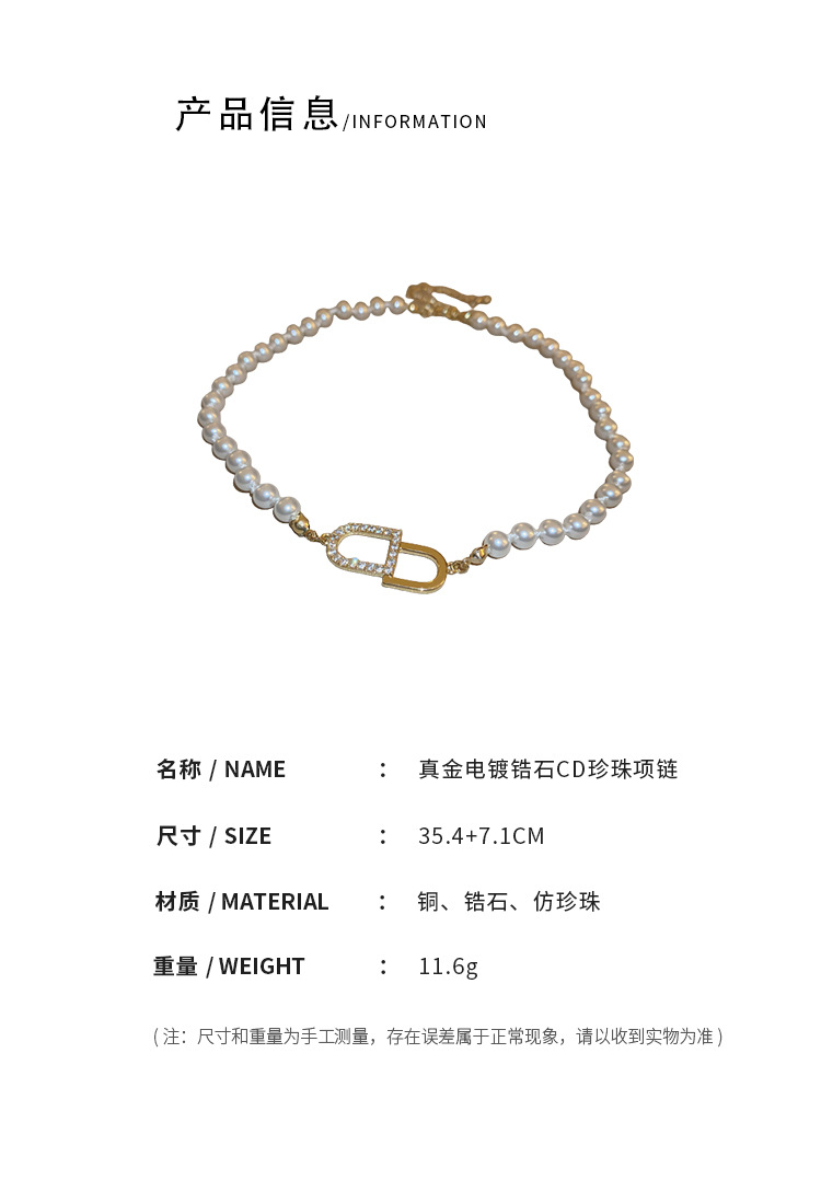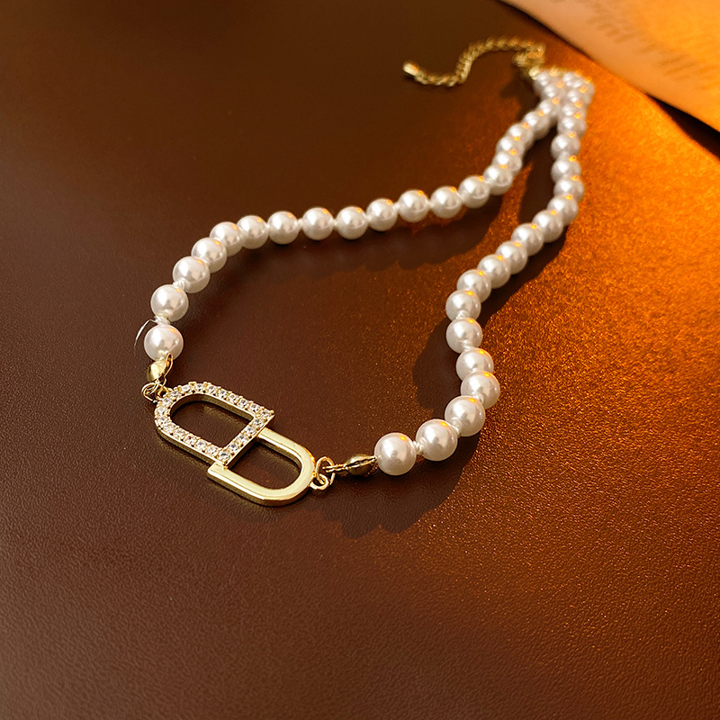 cd letter zircon pearl necklace