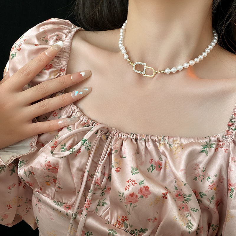 rhinestone pearl necklace necklace