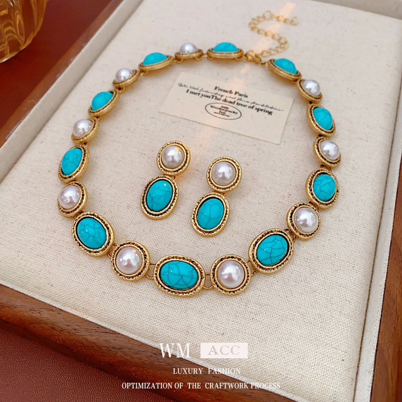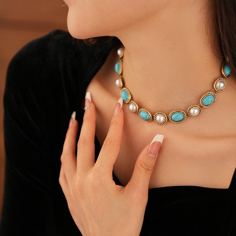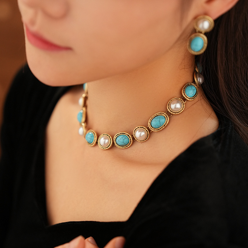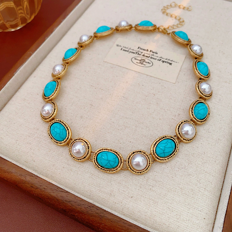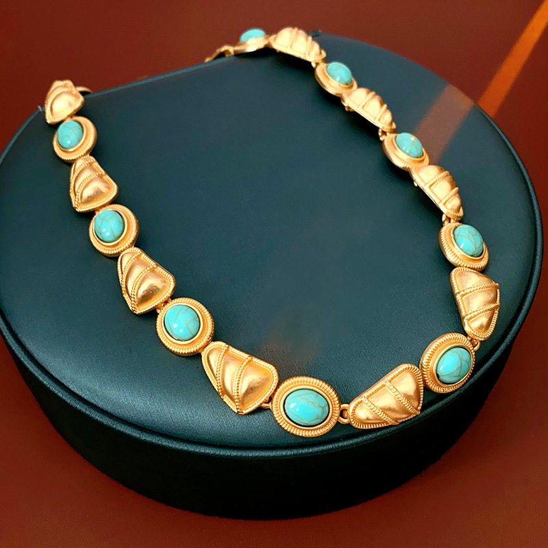 15# necklace-blue turquoise beaded metal arc