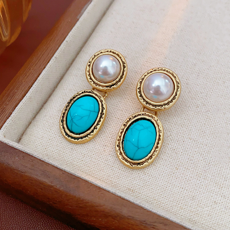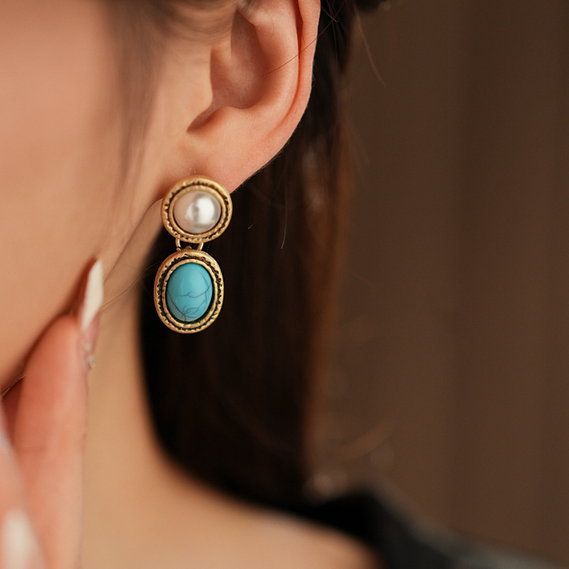 8# silver needle-blue oval turquoise ear studs