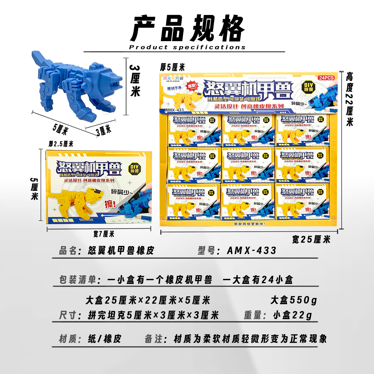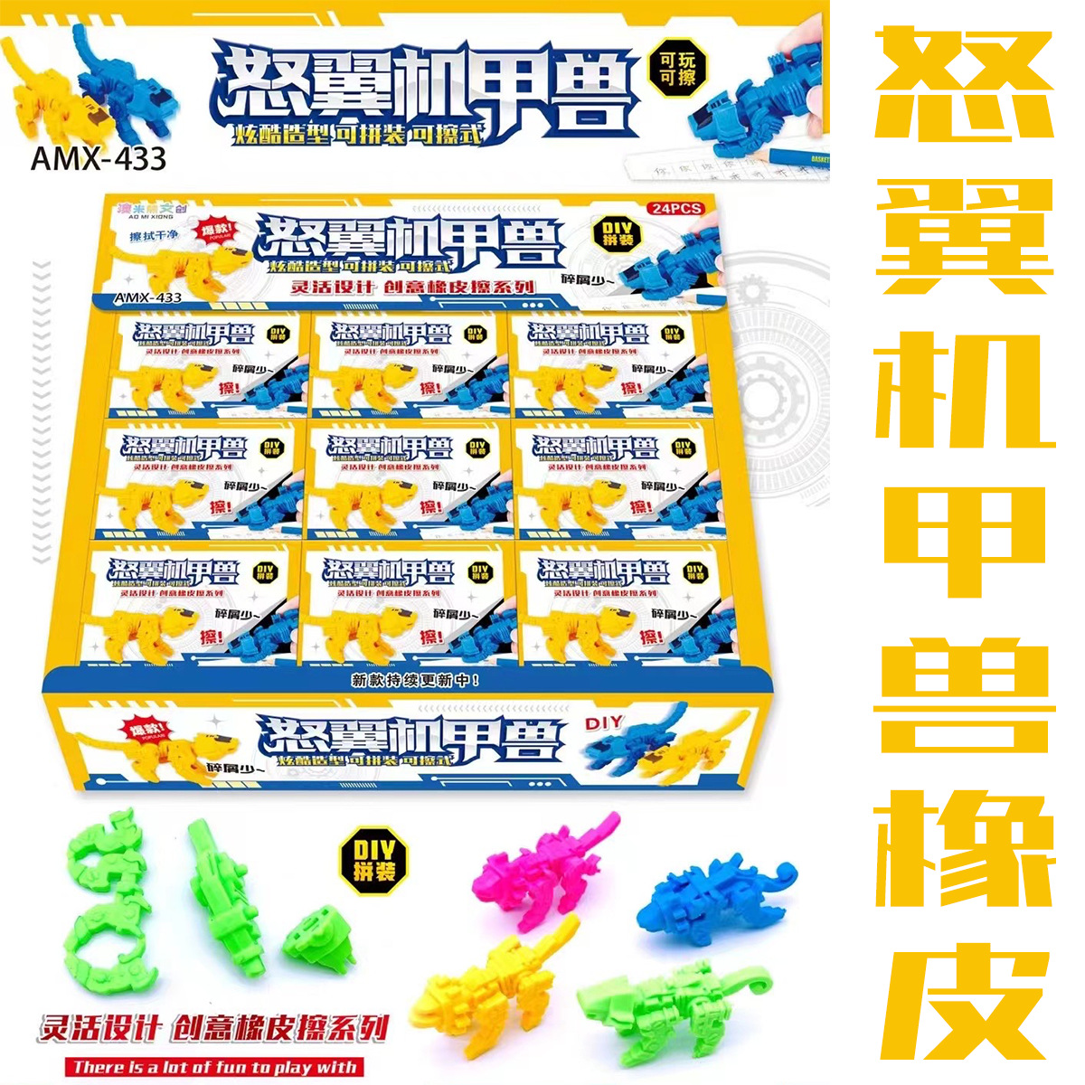 24 into mecha beast rubber child eraser cute reward pupils' eraser clean seamless robot rubber