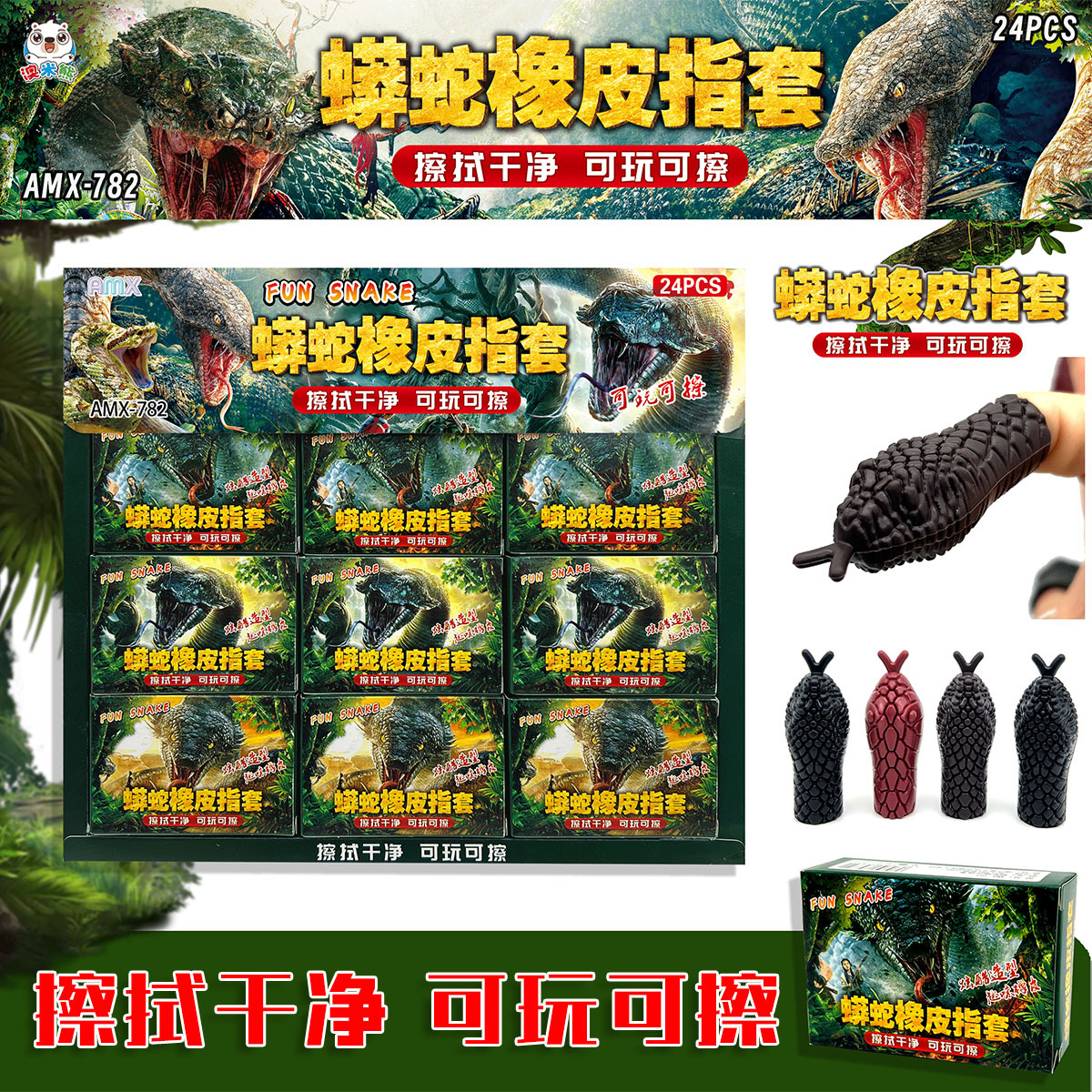 python eraser finger stall children's student studying stationery eraser funny creative gift toys school canteen