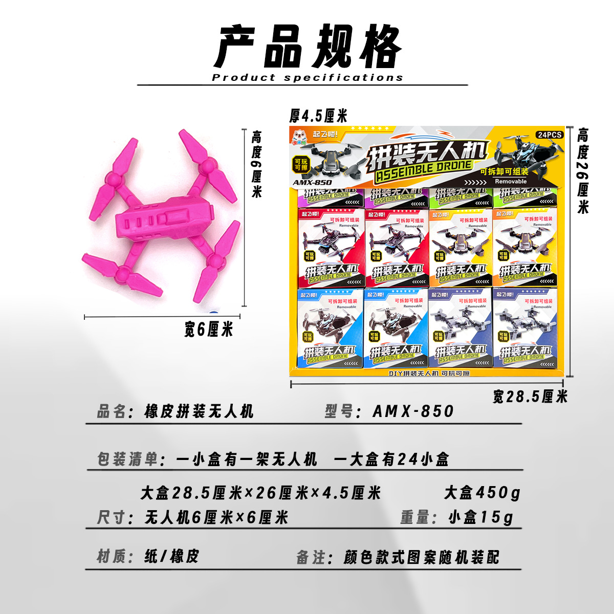 24-in-assembly uav assembled rubber fun modeling kindergarten children's day stationery removable elephant skin