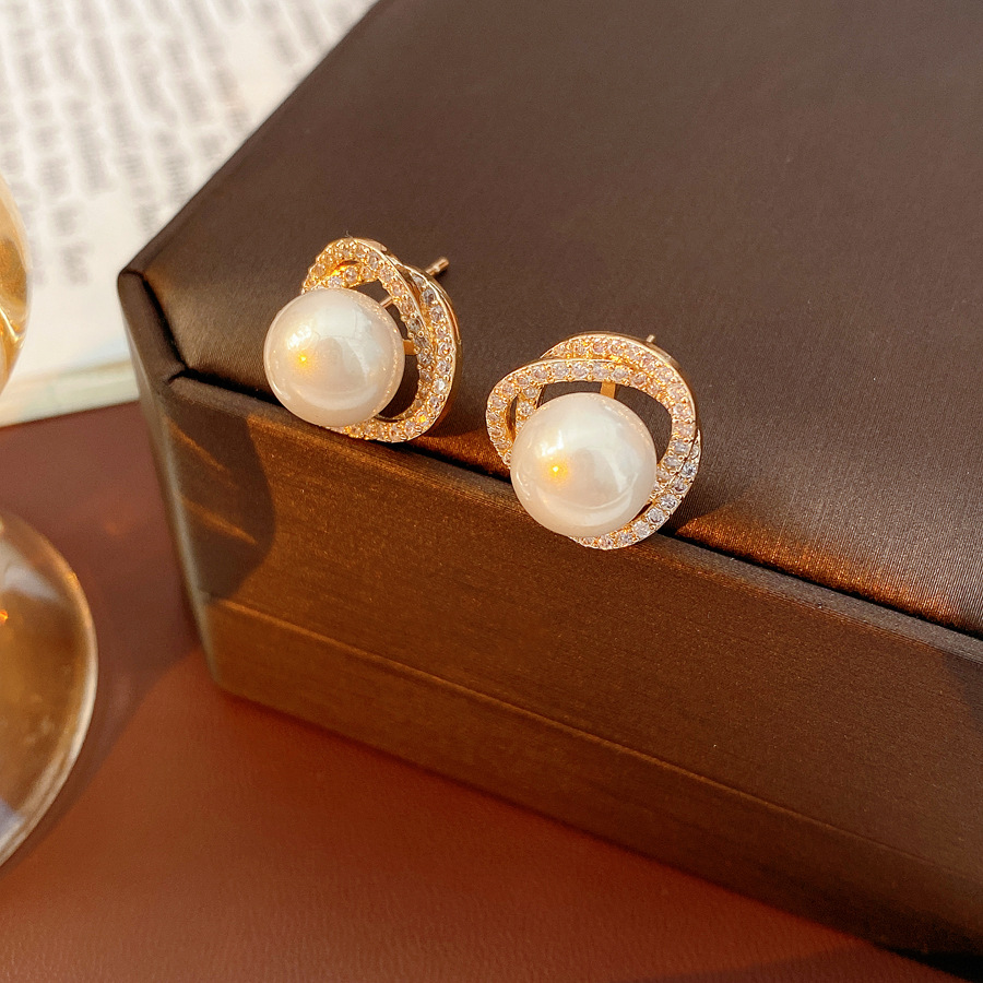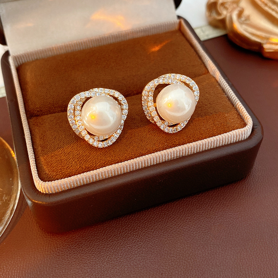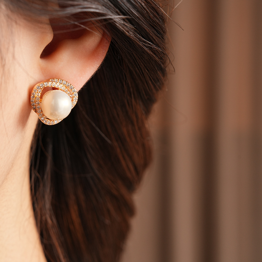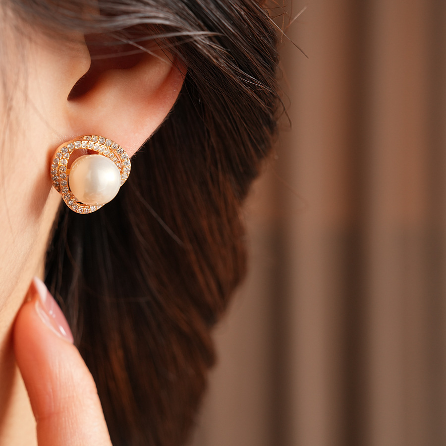 silver needle super flash zircon vortex pearl earrings french vintage court style earrings light luxury minority high-grade earrings