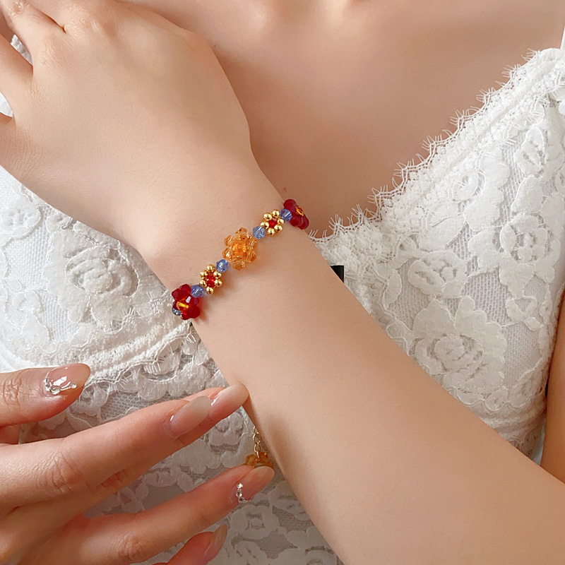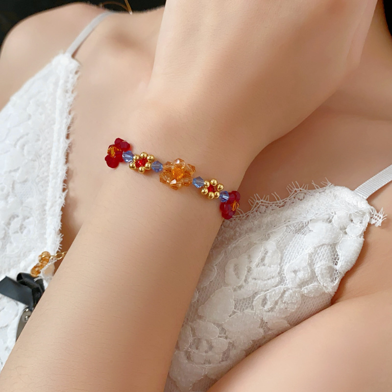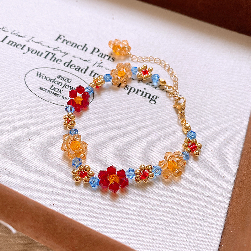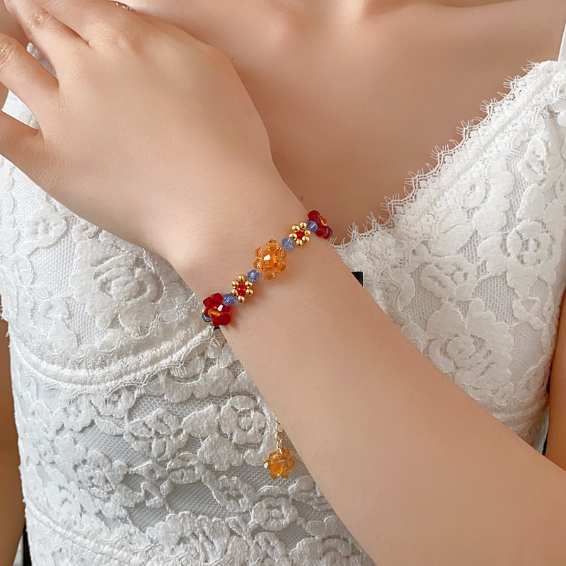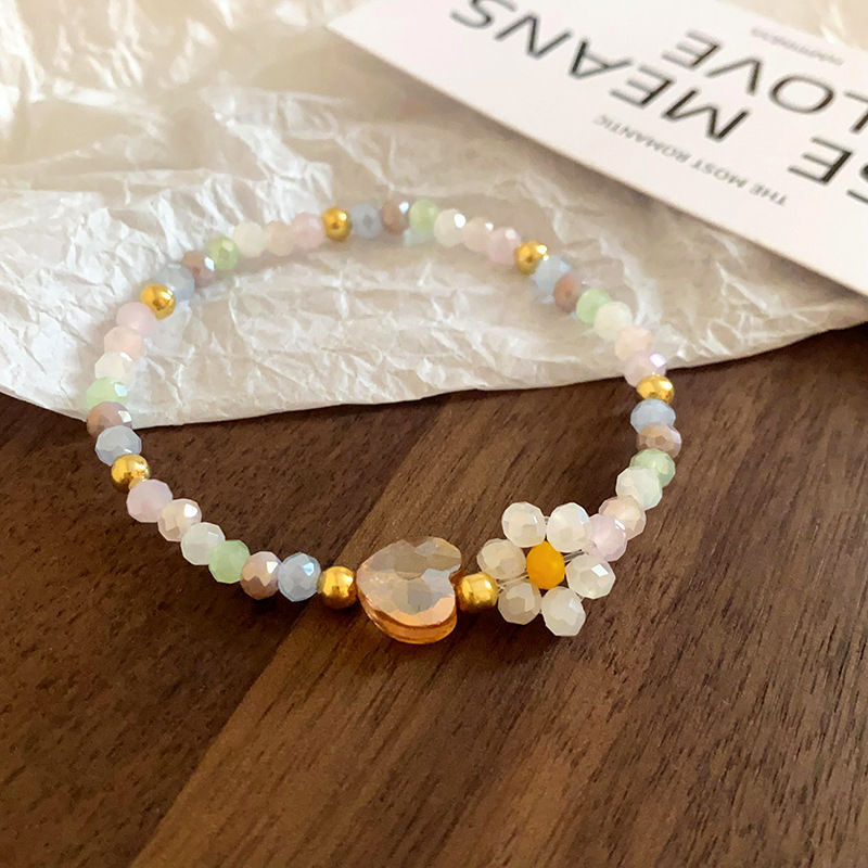 6# love heart flowers beaded crystal bracelet