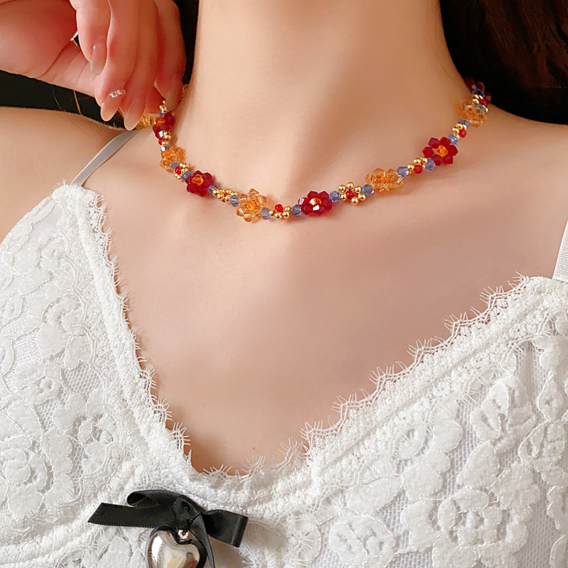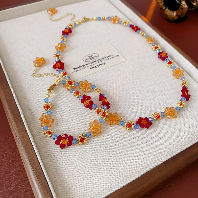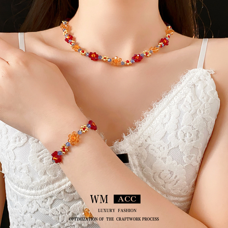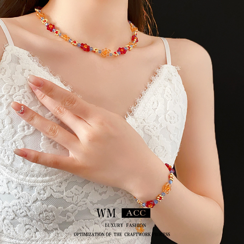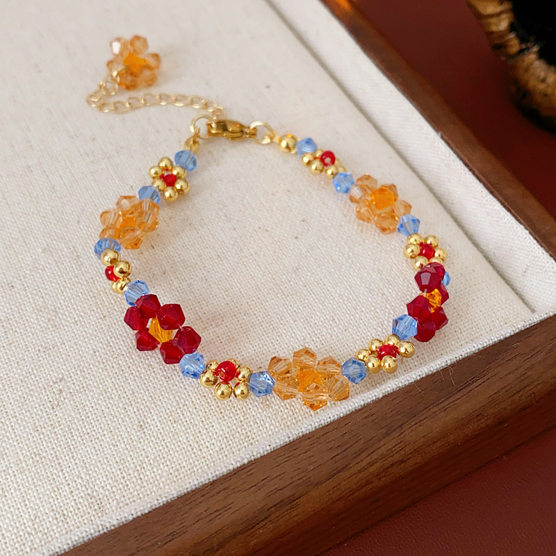6# love heart flowers beaded crystal bracelet