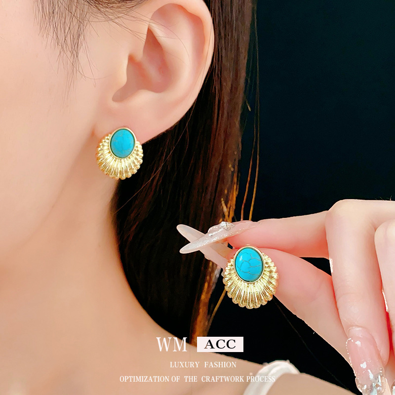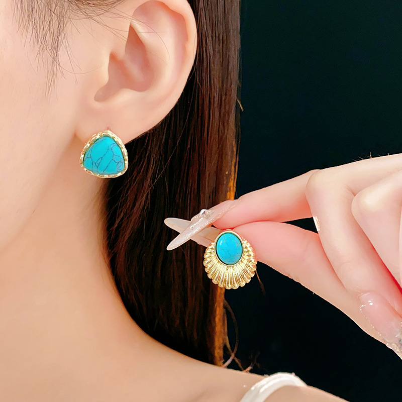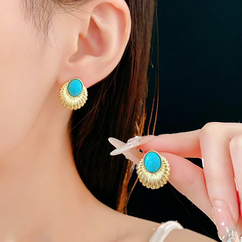 silver needle-gold blue oval