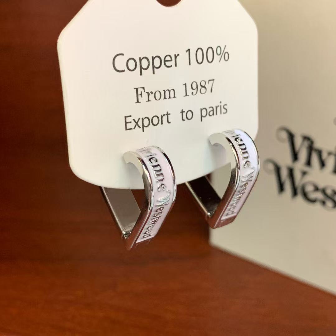 silver style pink love dripping oil ear clip