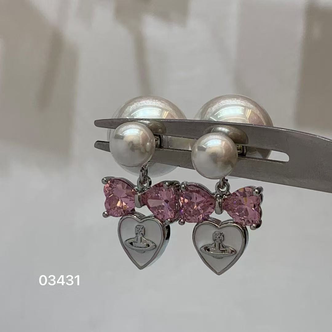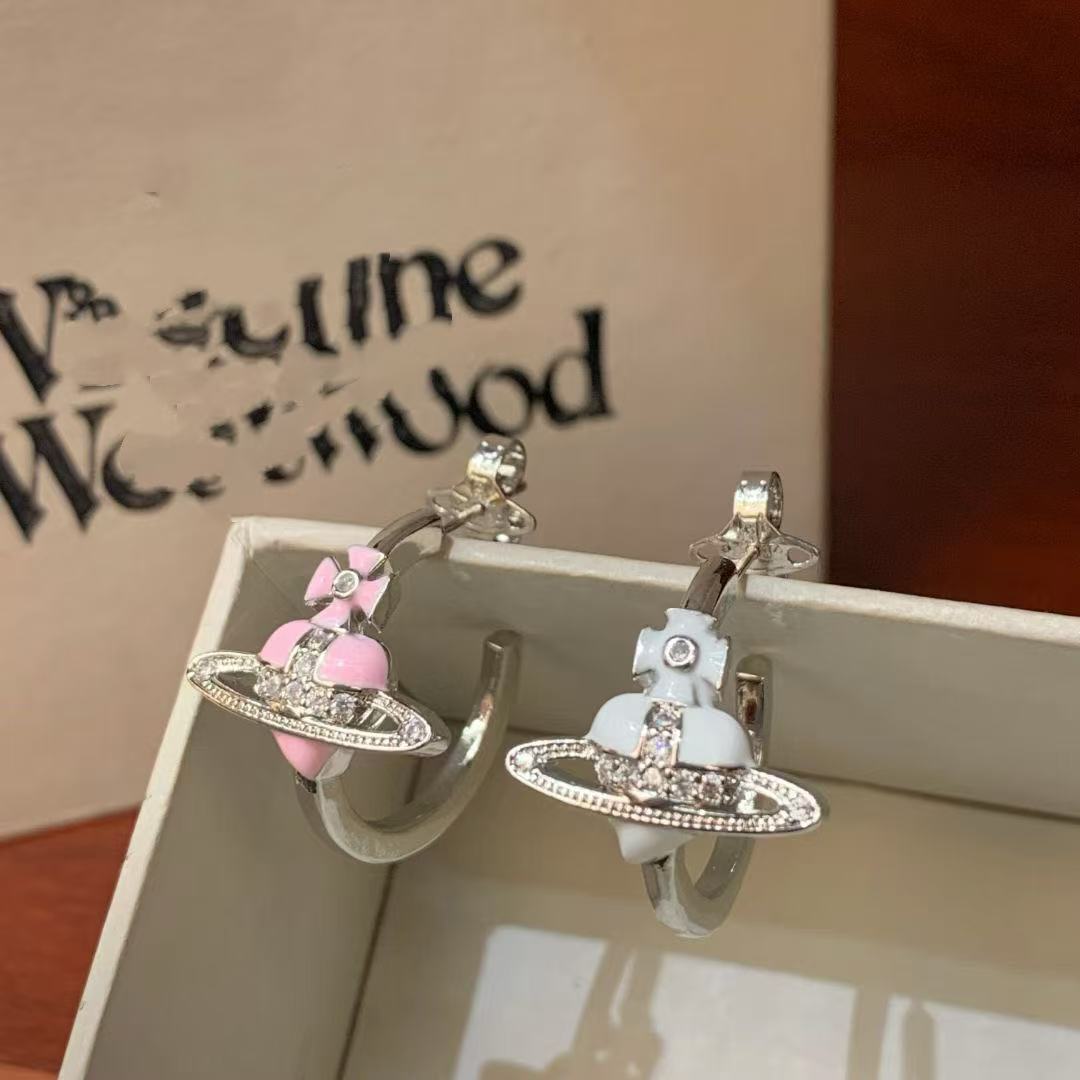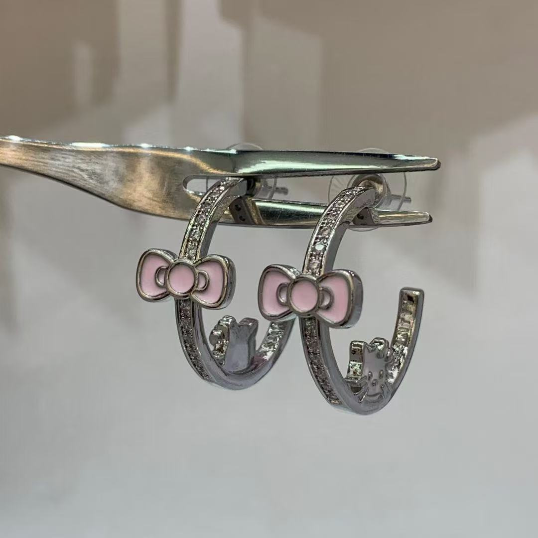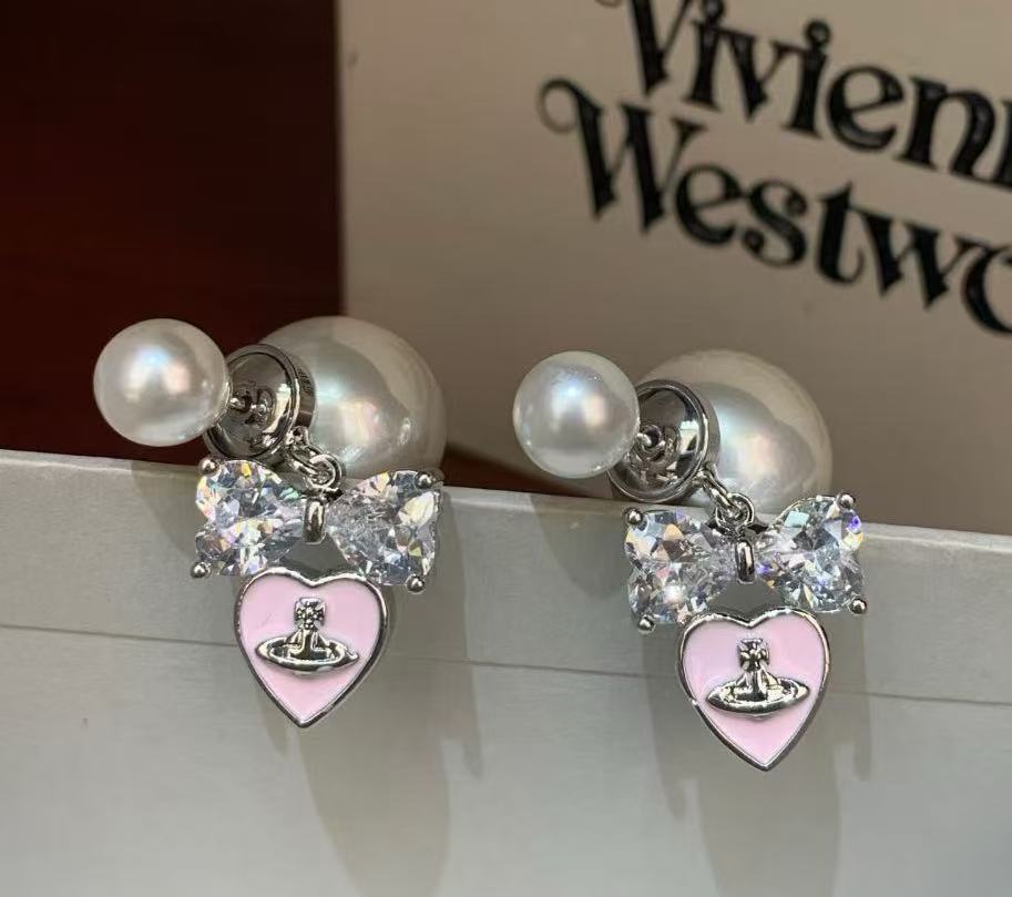 double wear pink diamond bowknot saturn earrings