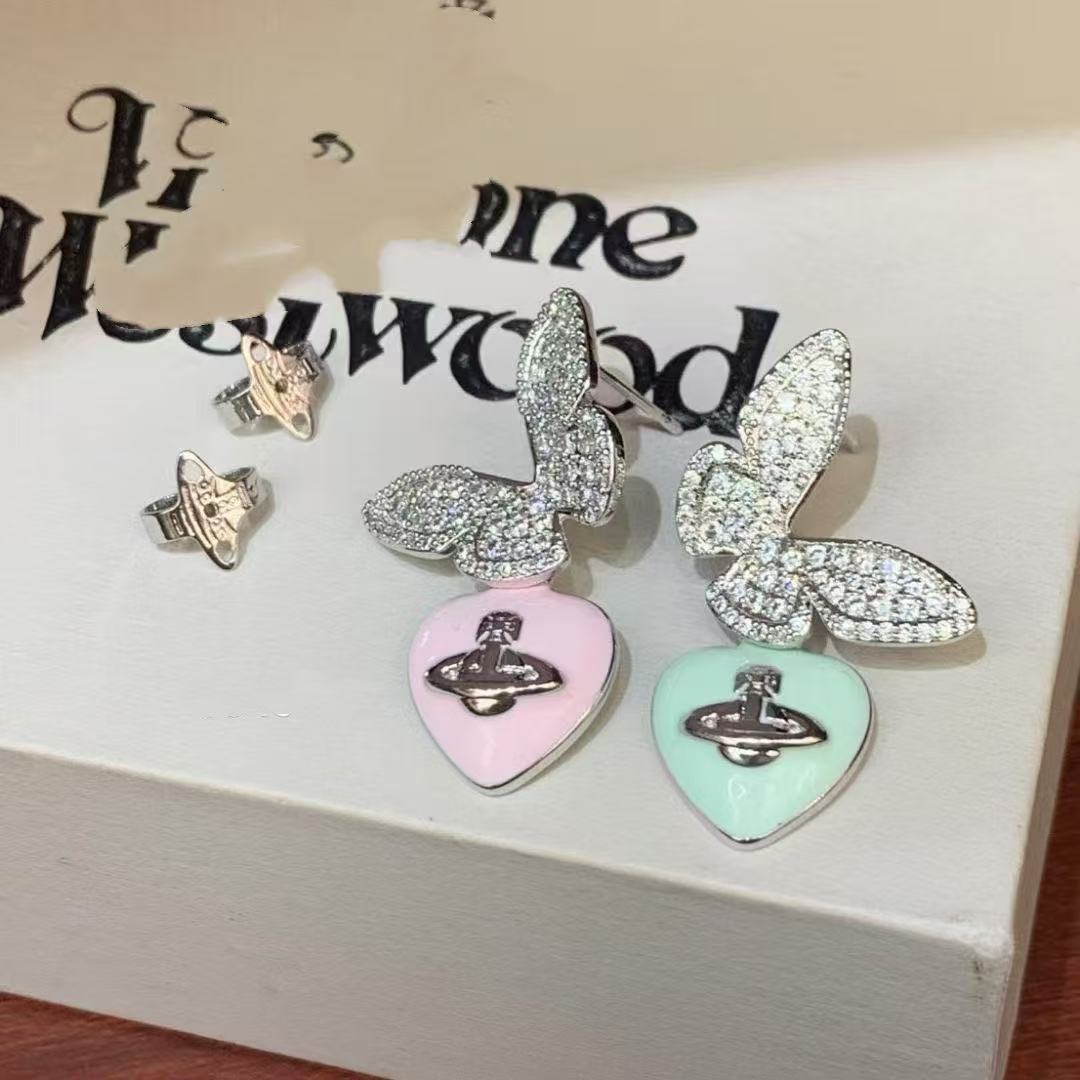 colored loving heart ear studs