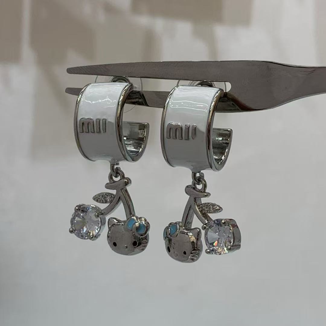 c- ring pink diamond cherry-shaped earrings