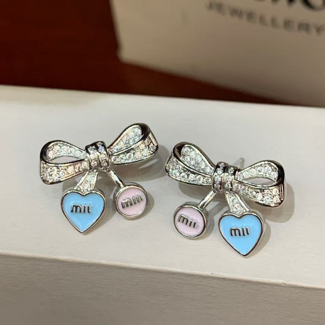 zircon bowknot color small pendant earrings