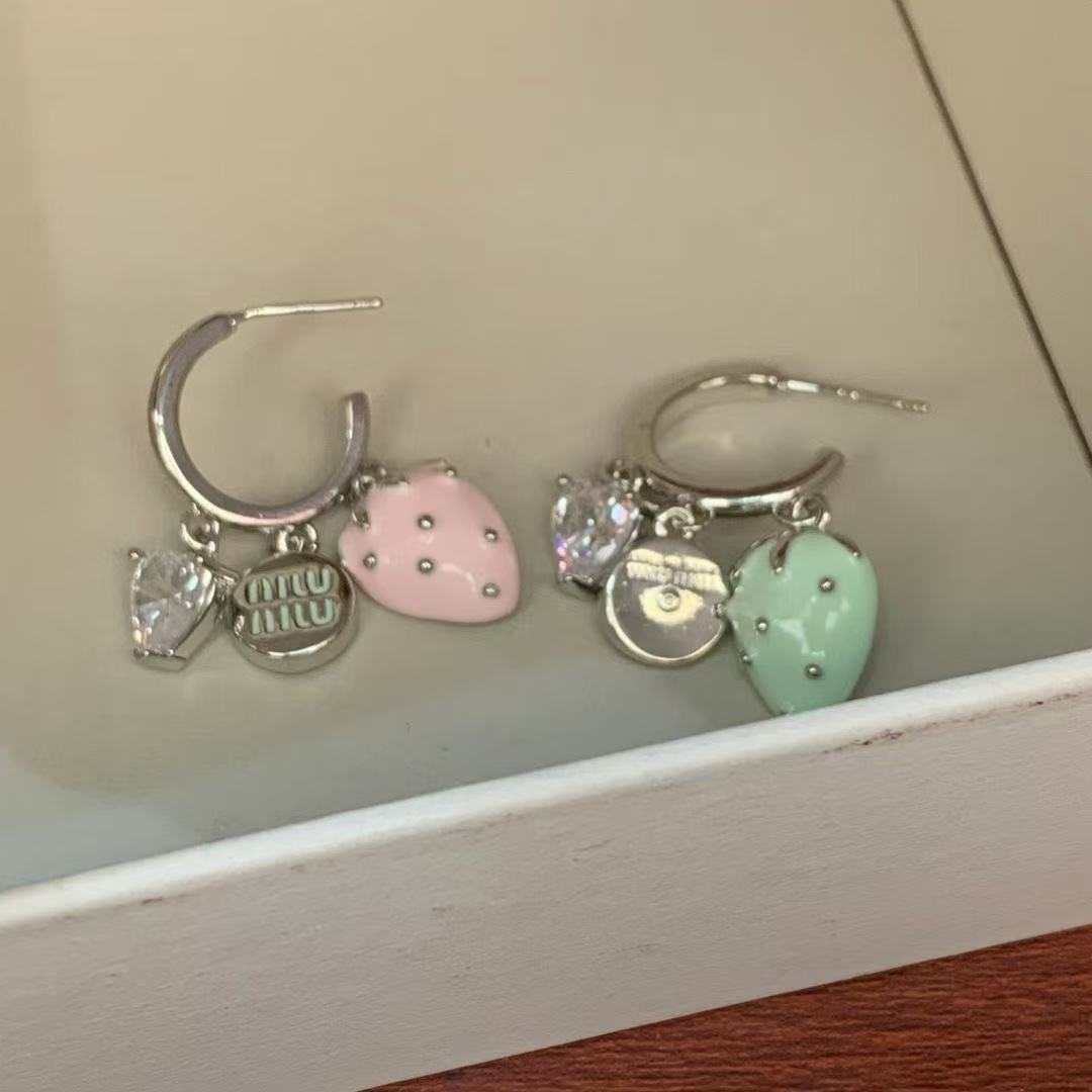 colorful strawberry loving heart zircon earrings