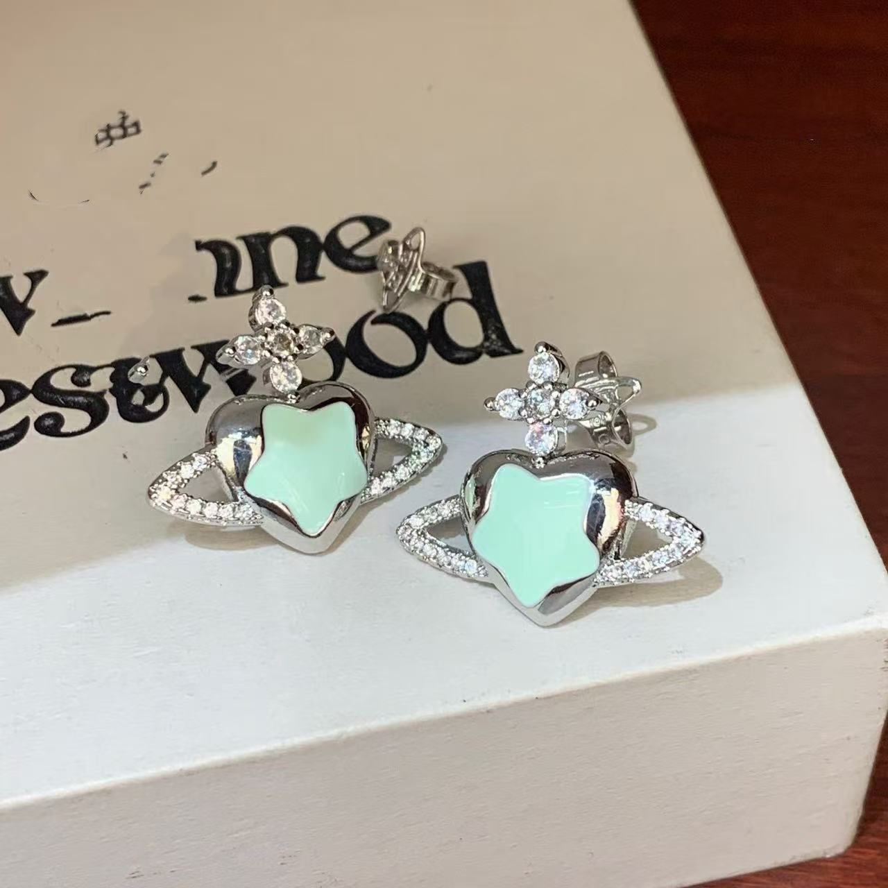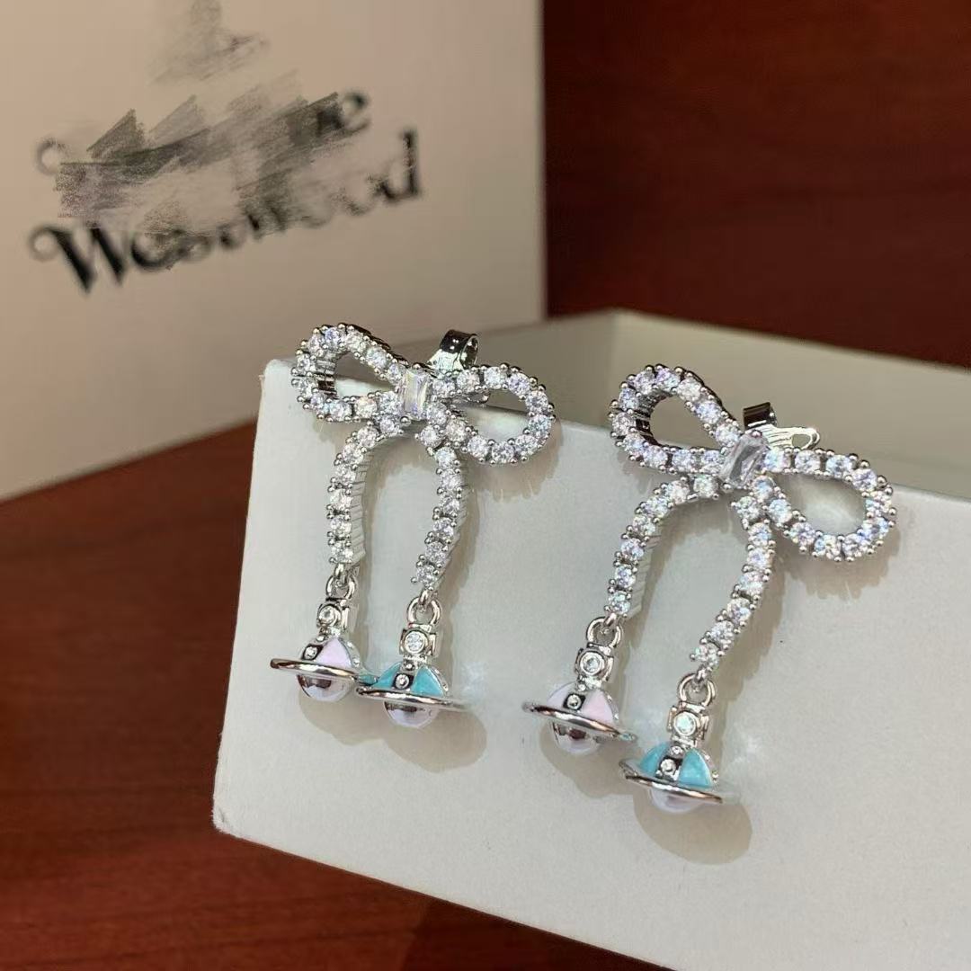 double wear white diamond bowknot saturn earrings