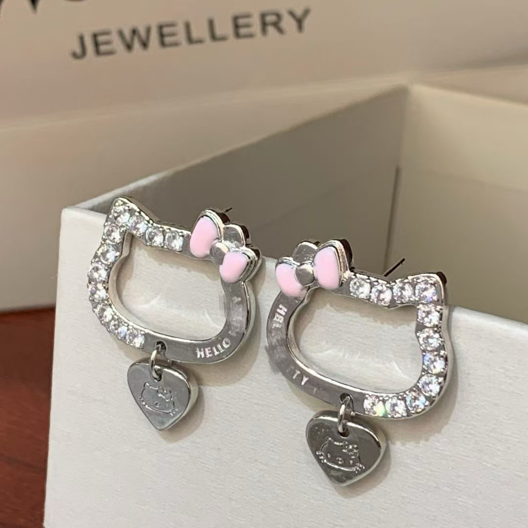 pink drip glazed love heart bow tie pendant earrings