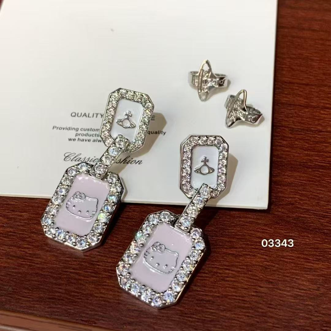 square kitten saturn earrings