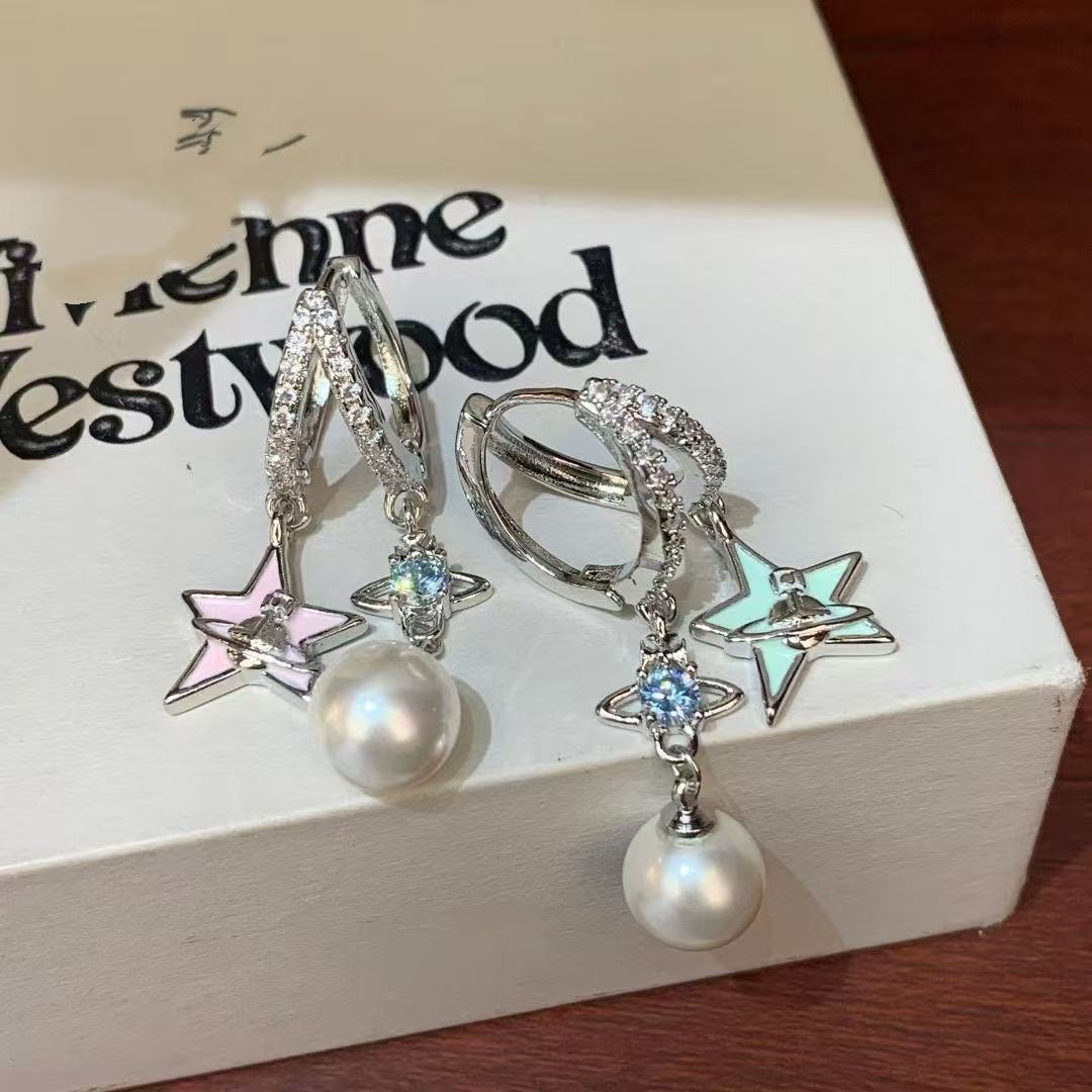 five-pointed star love heart earrings