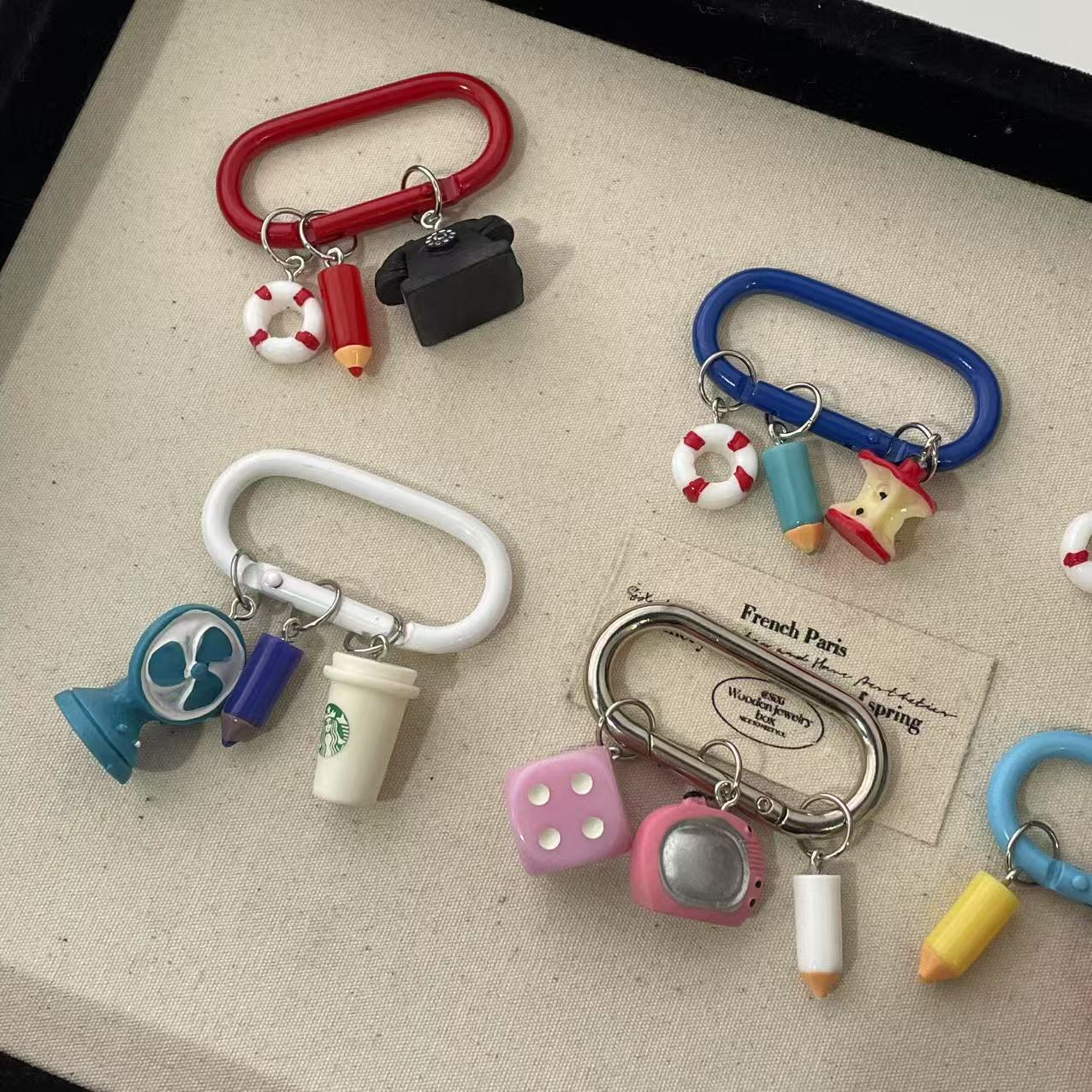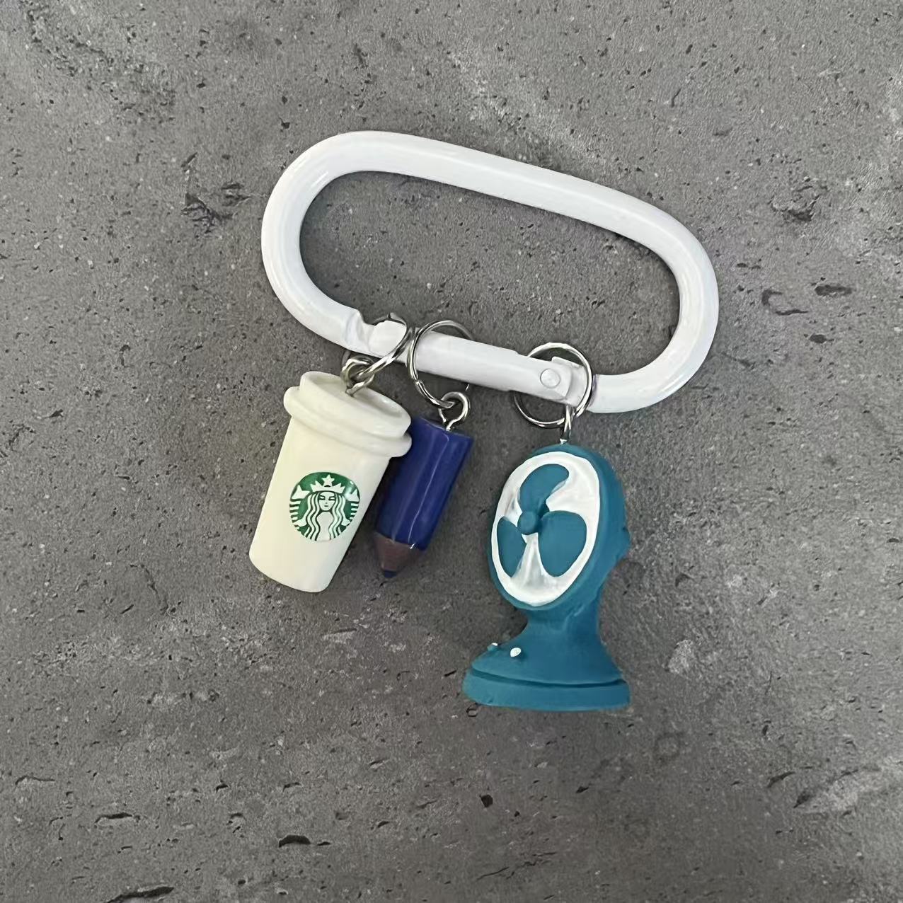 white coffee cup runway ring keychain