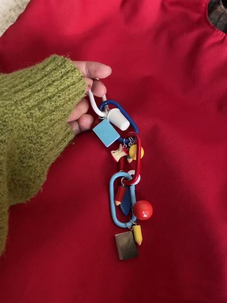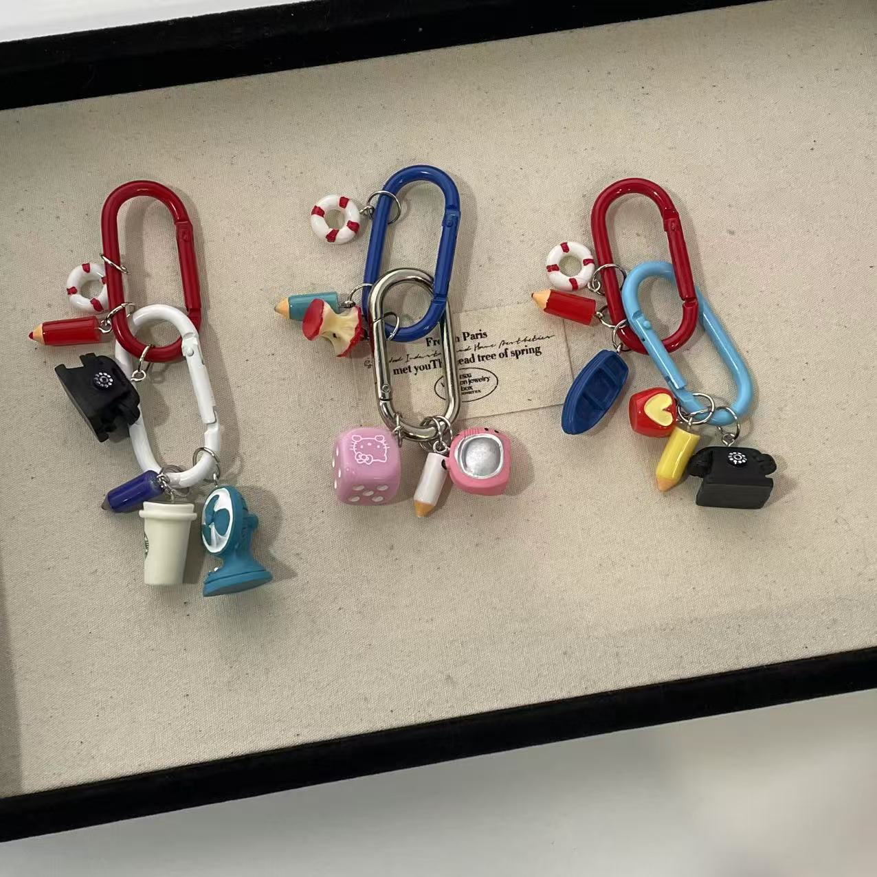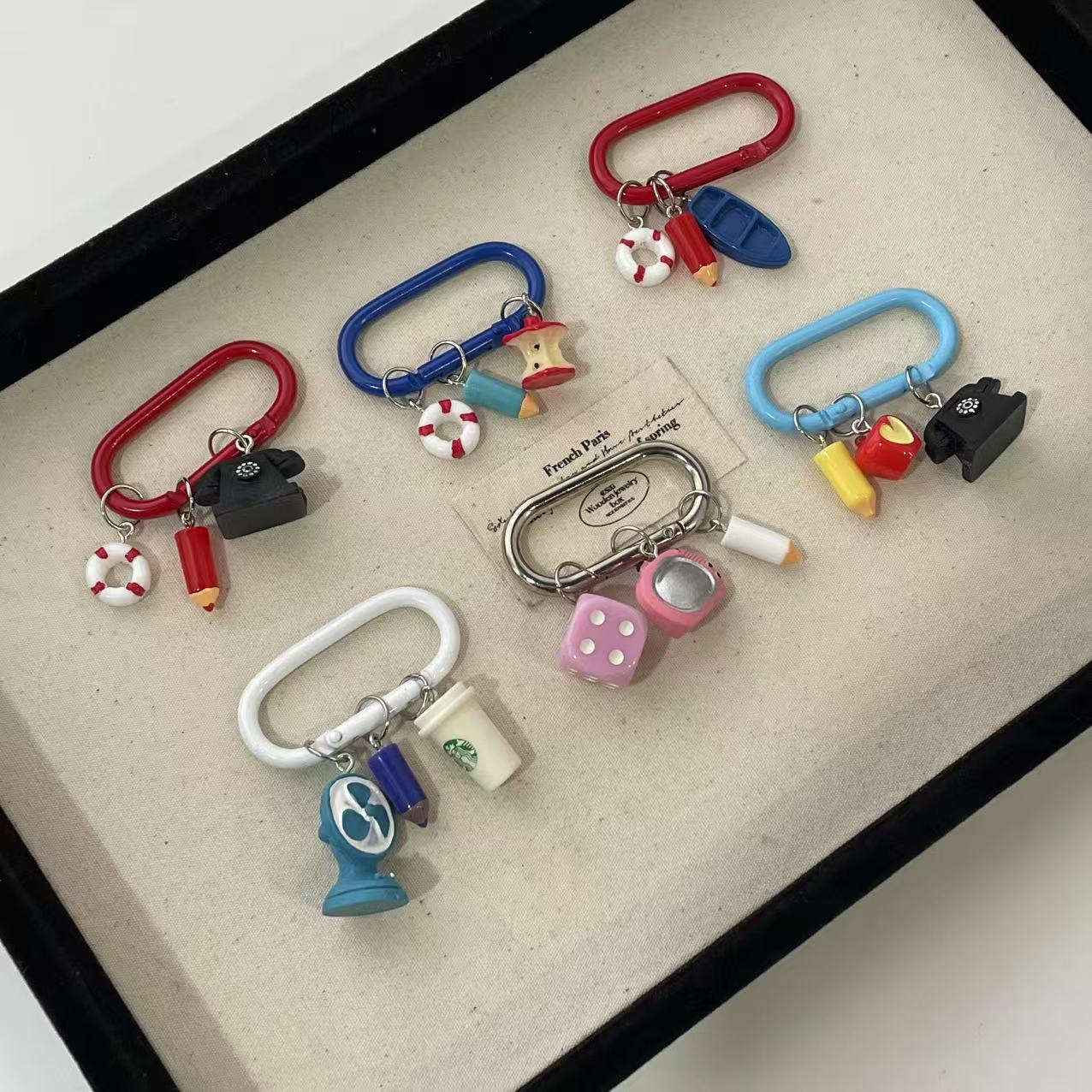 red telephone runway ring keychain