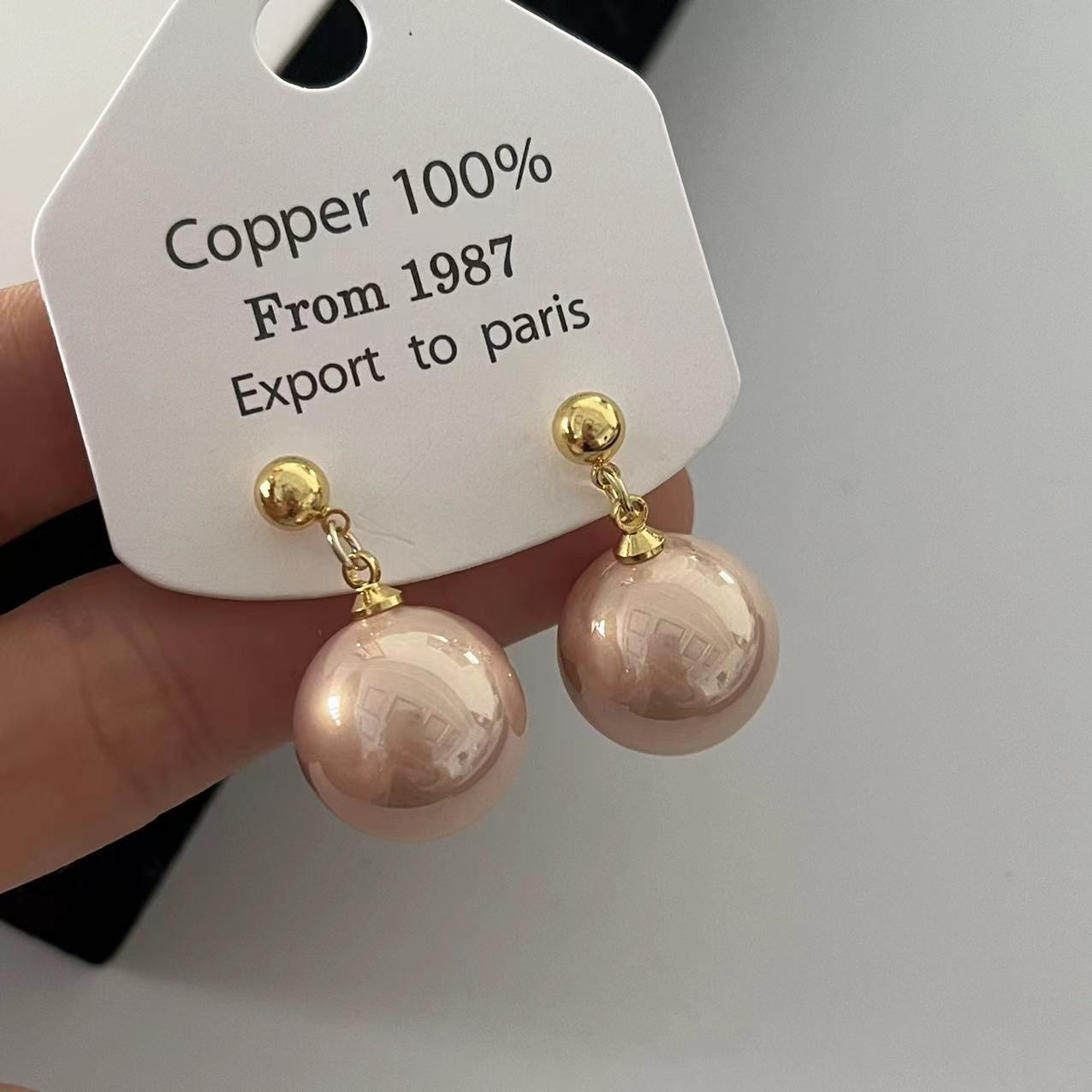 baby pink pendant pearl stud earrings [16mm]]