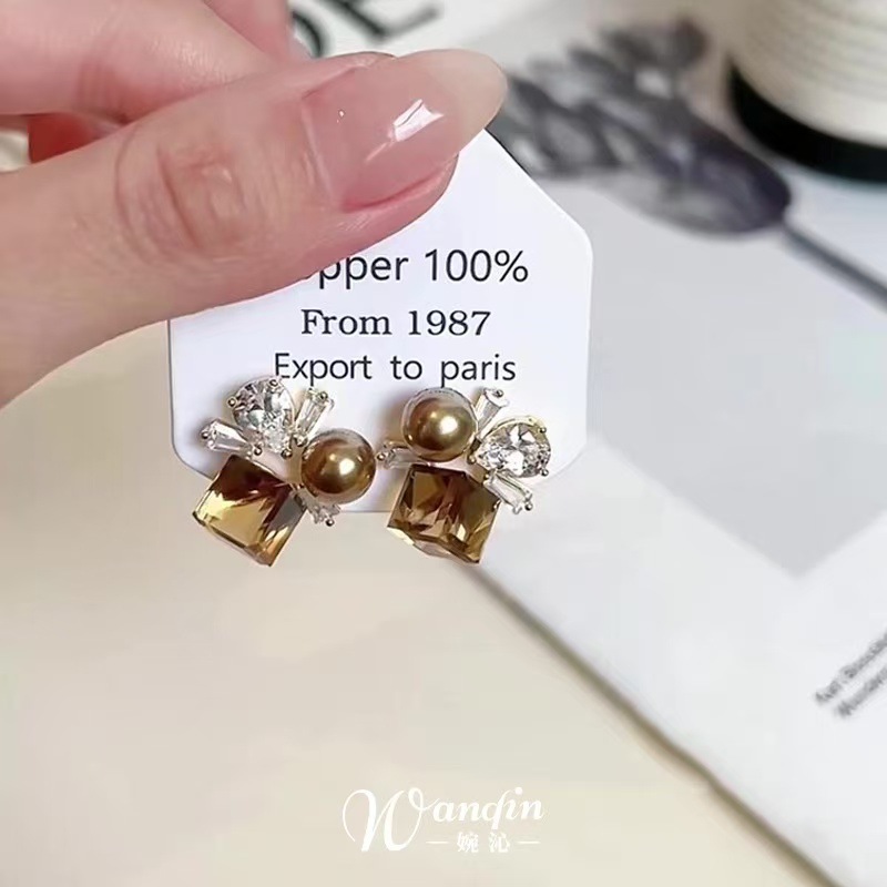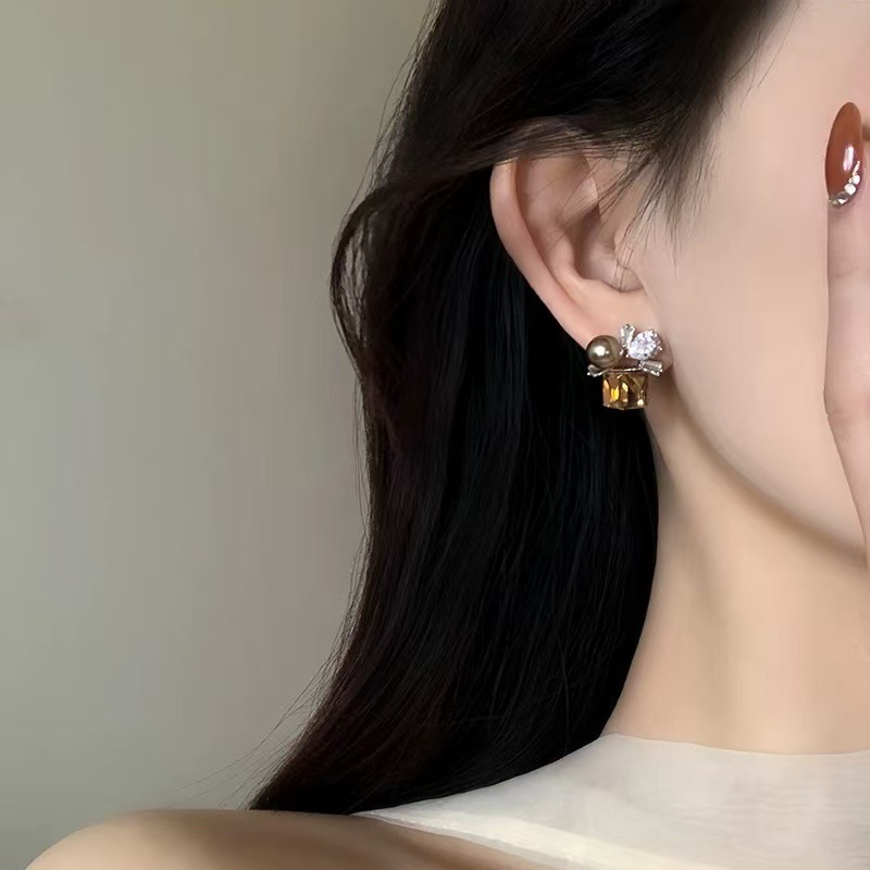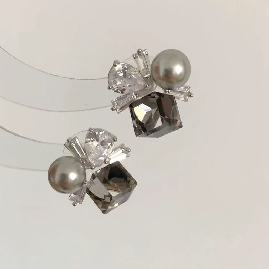 super shiny gray crystal earrings