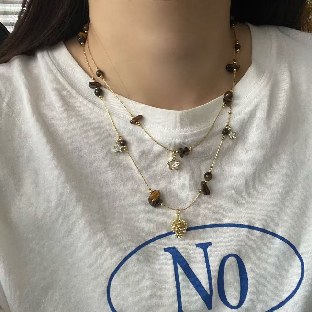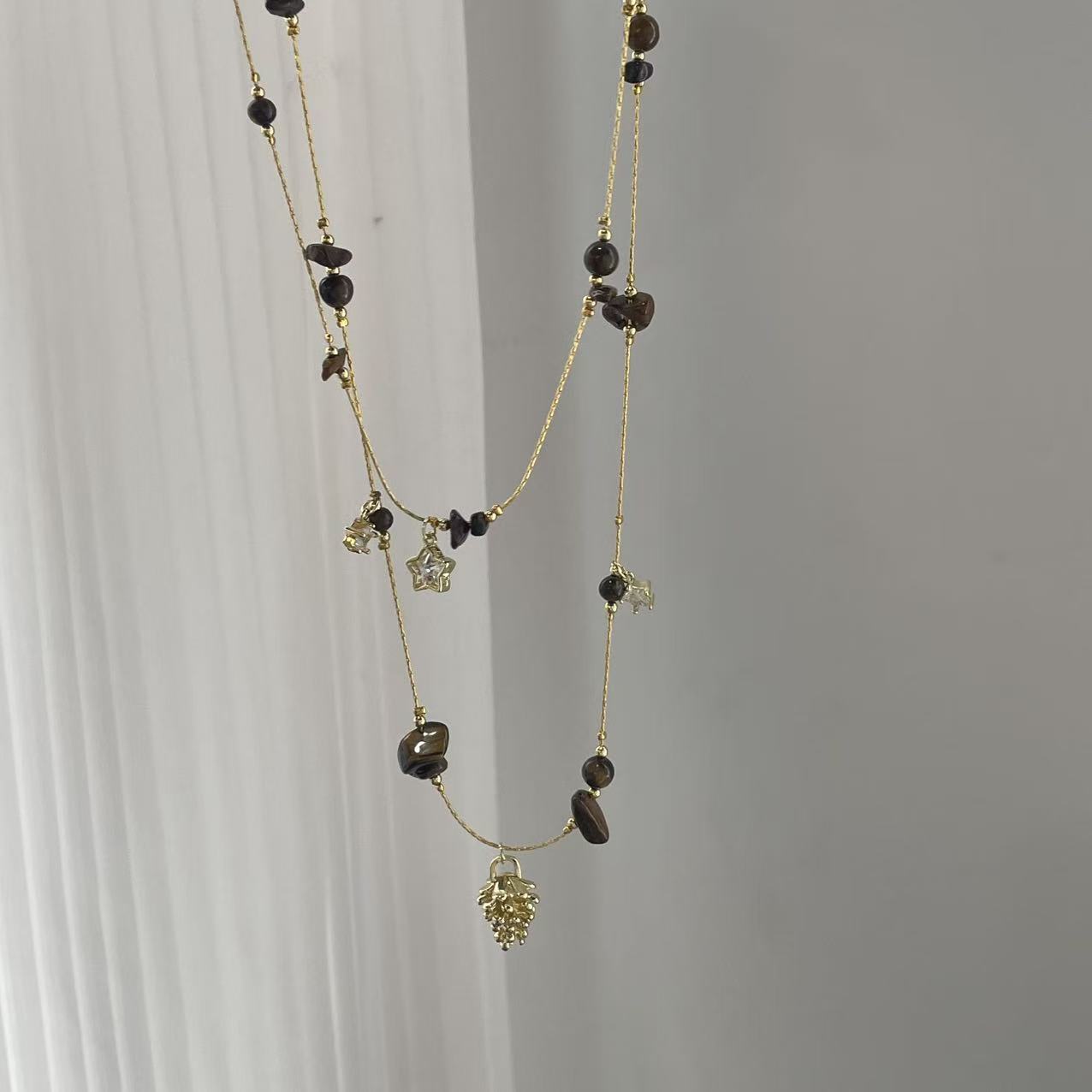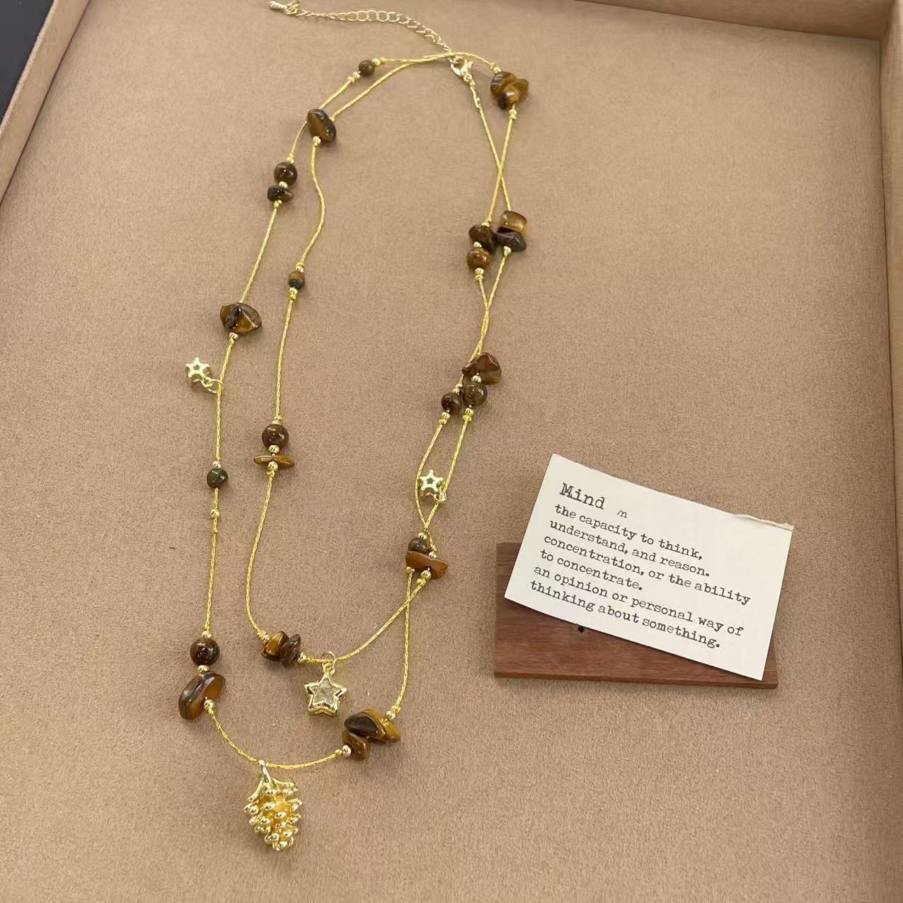 coffee color series golden pine cone long necklace