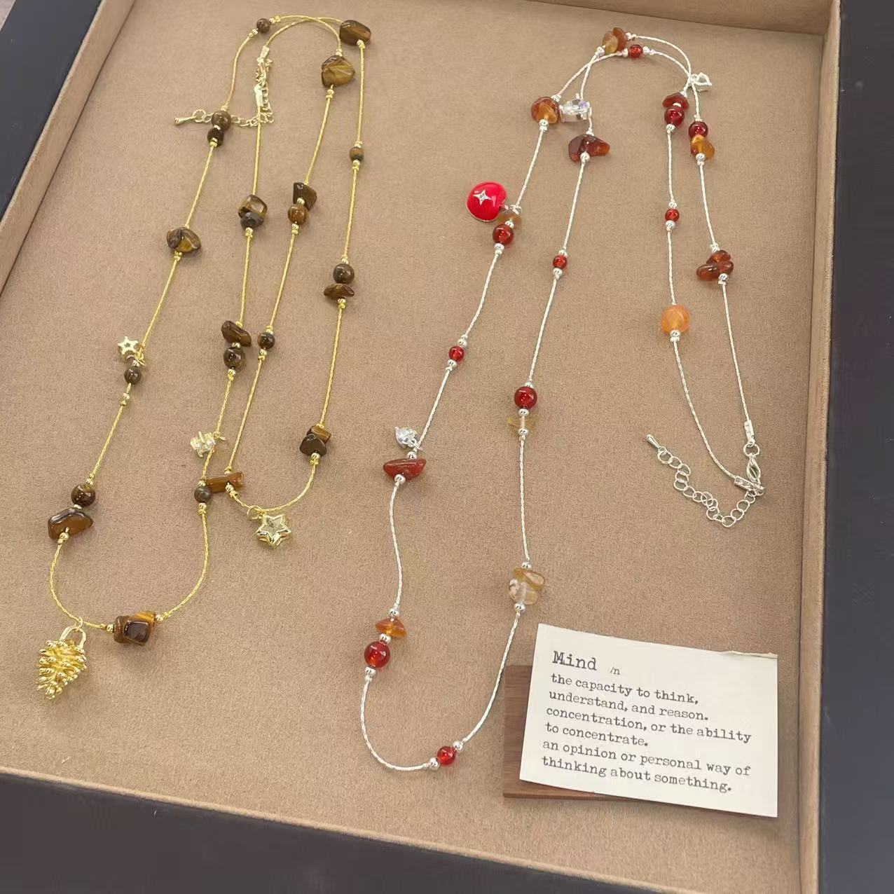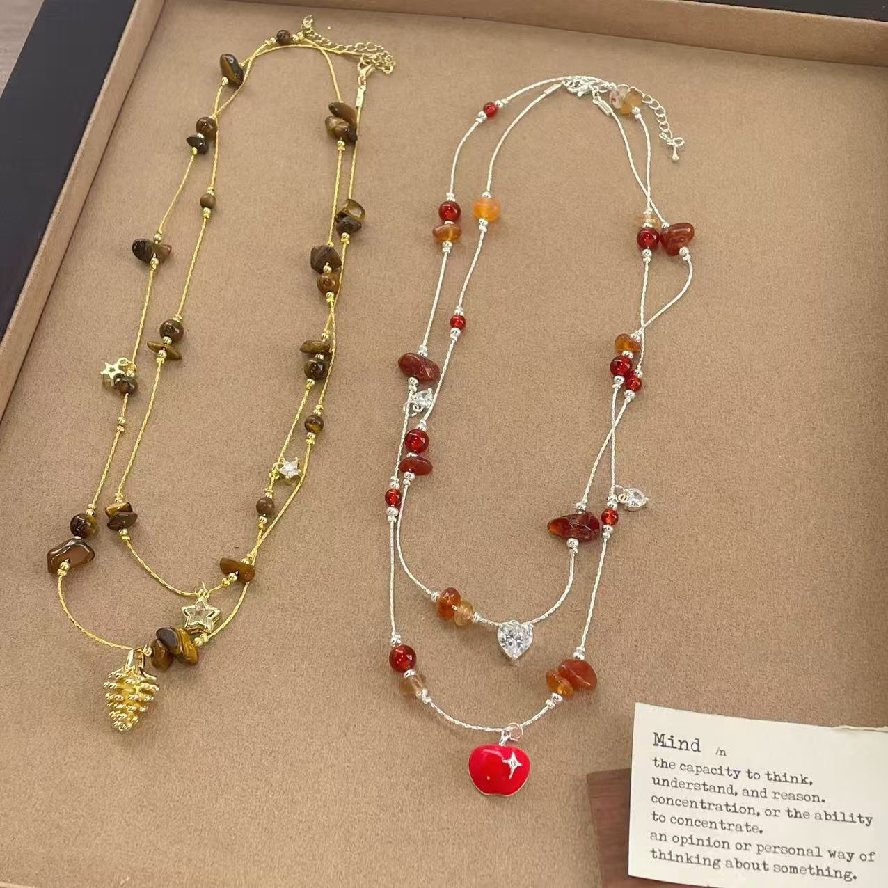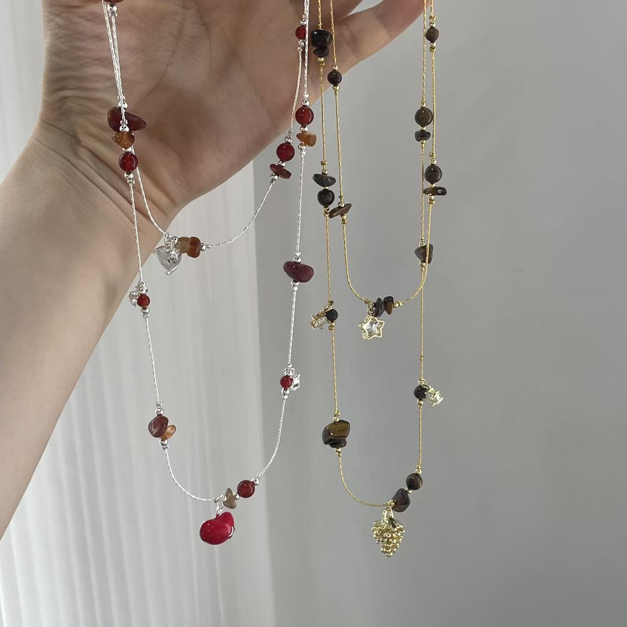 coffee color series golden pine cone long necklace