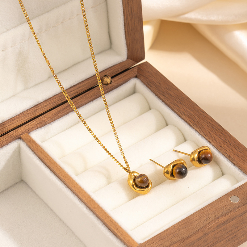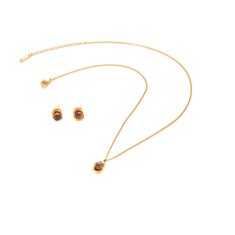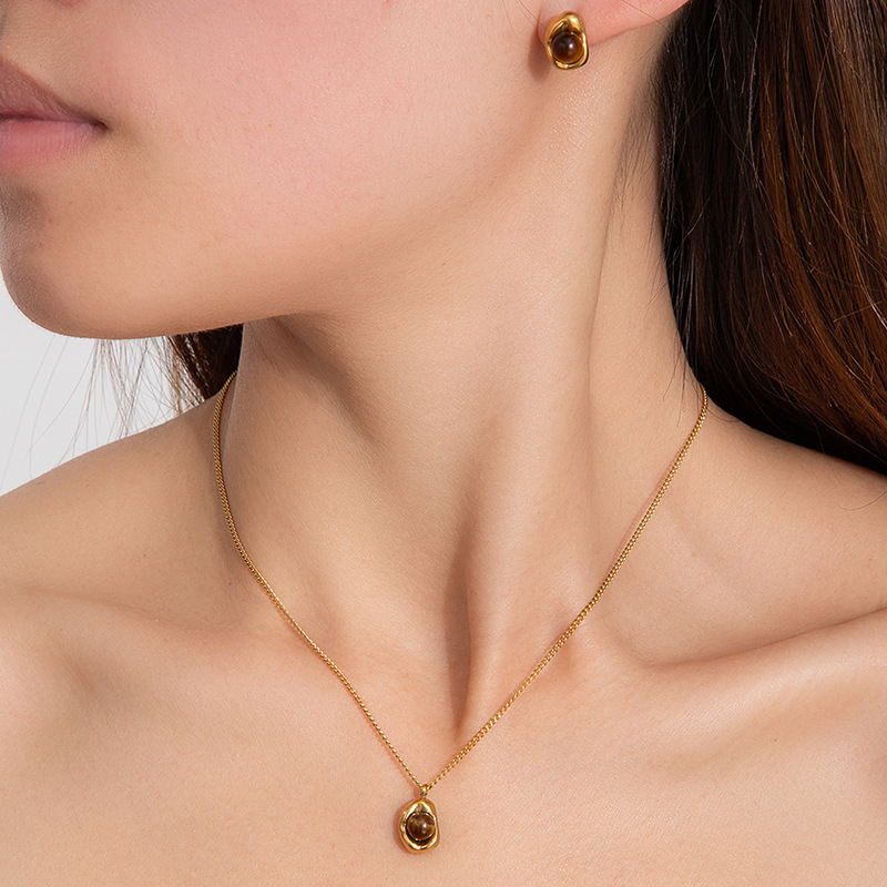 geometric maillard stone necklace and earrings suite