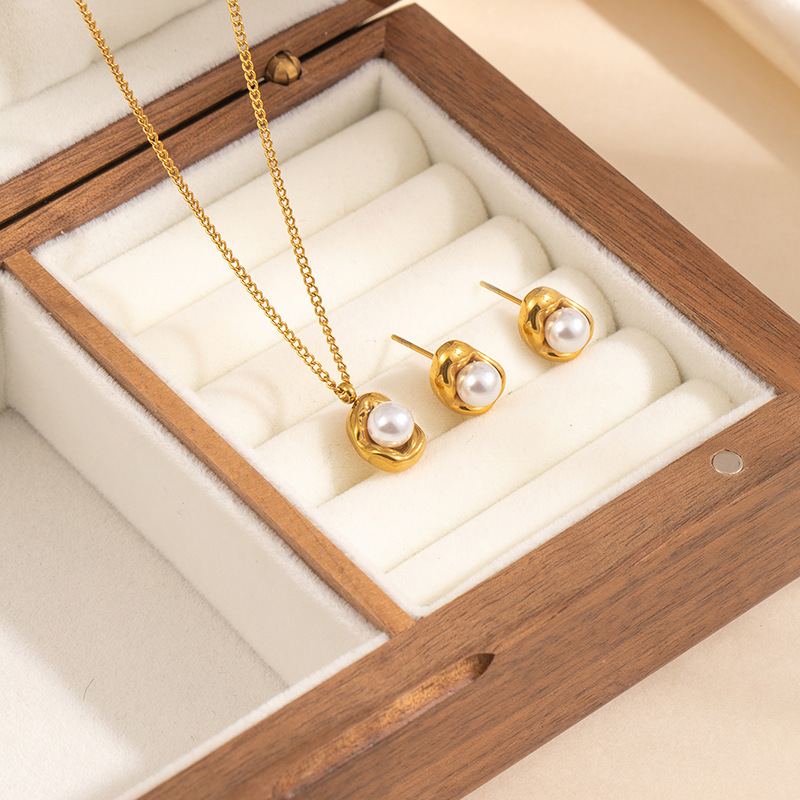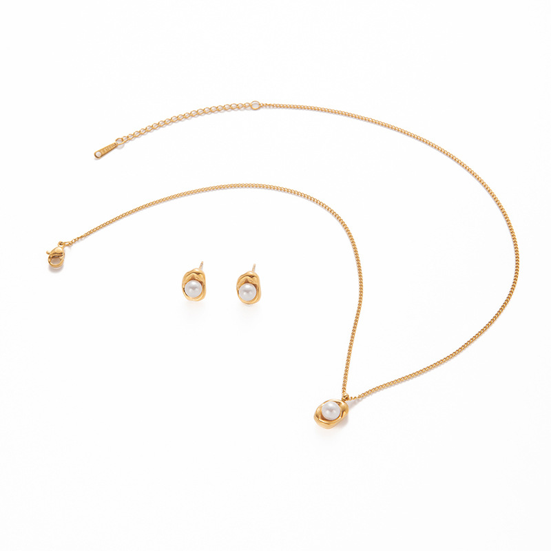 geometric pearl necklace and earrings suite