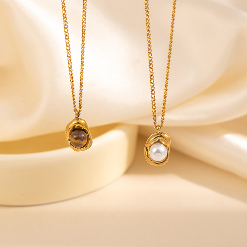 geometric maillard stone pendant necklace 0876