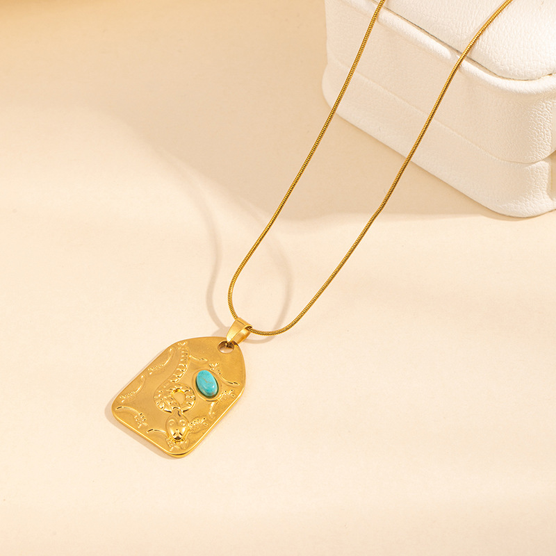 geometric snake brand turquoise necklace-snake chain 0859