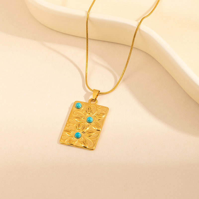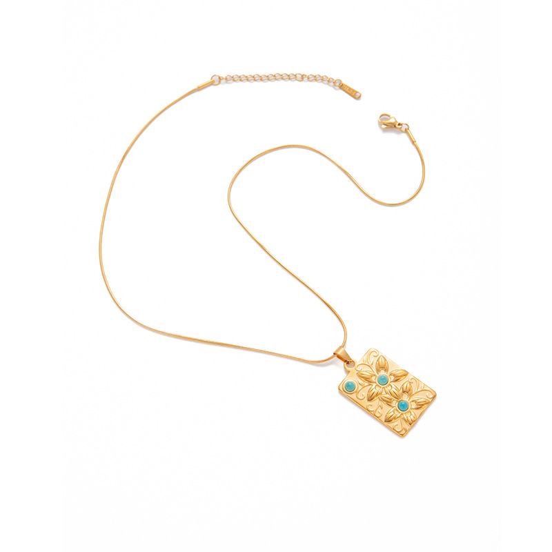 square plate flower turquoise necklace-snake chain 0860