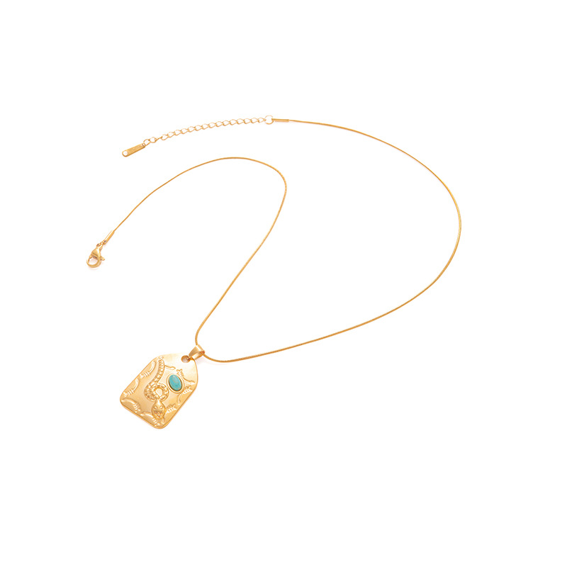 square plate three turquoise necklace-snake chain 0862