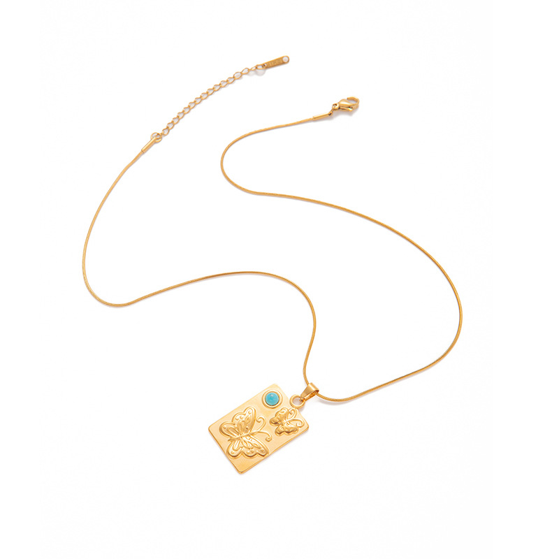 square plate butterfly blue tophus necklace-snake chain 0863