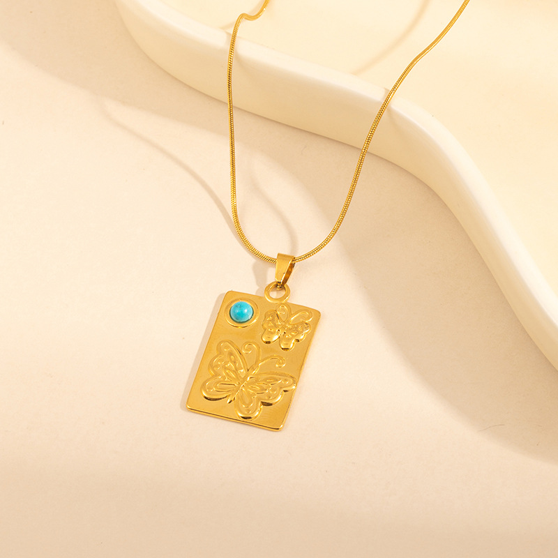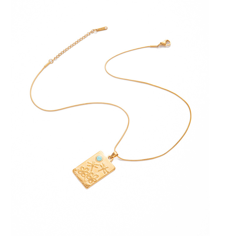 square plate dragonfly turquoise necklace-snake chain 0861
