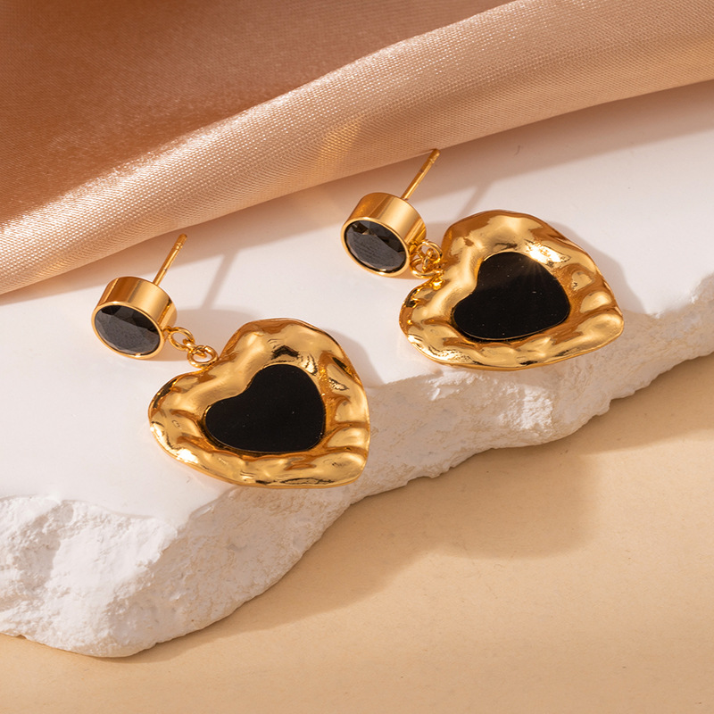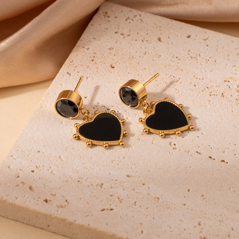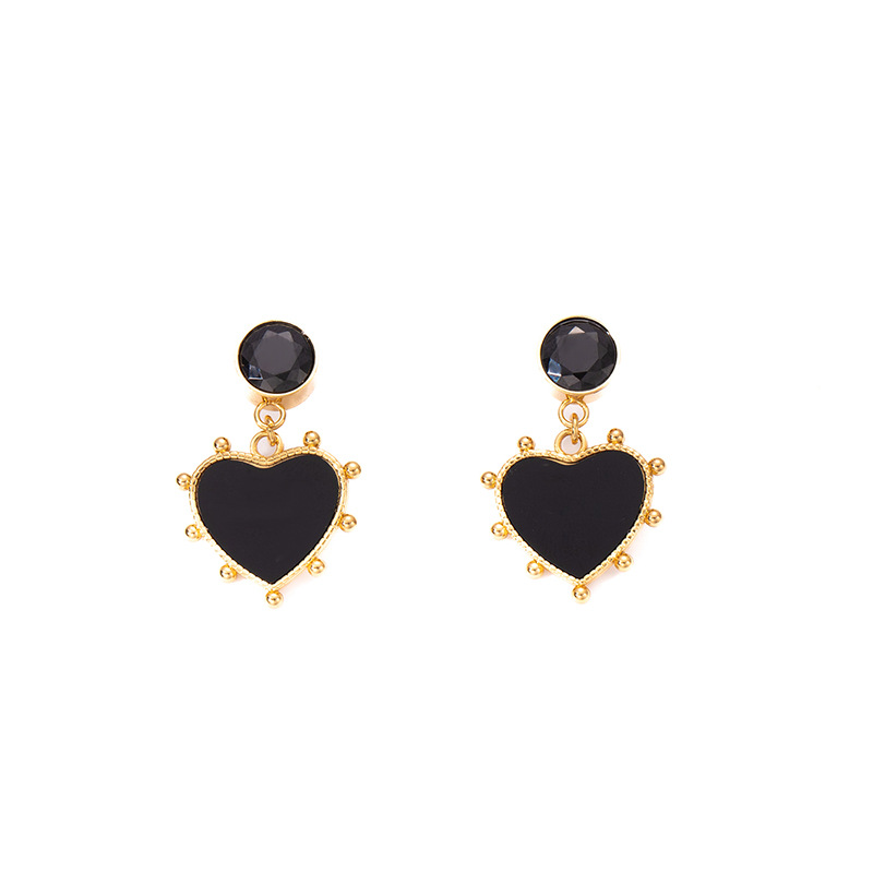 black zirconium love heart stud earrings 1996