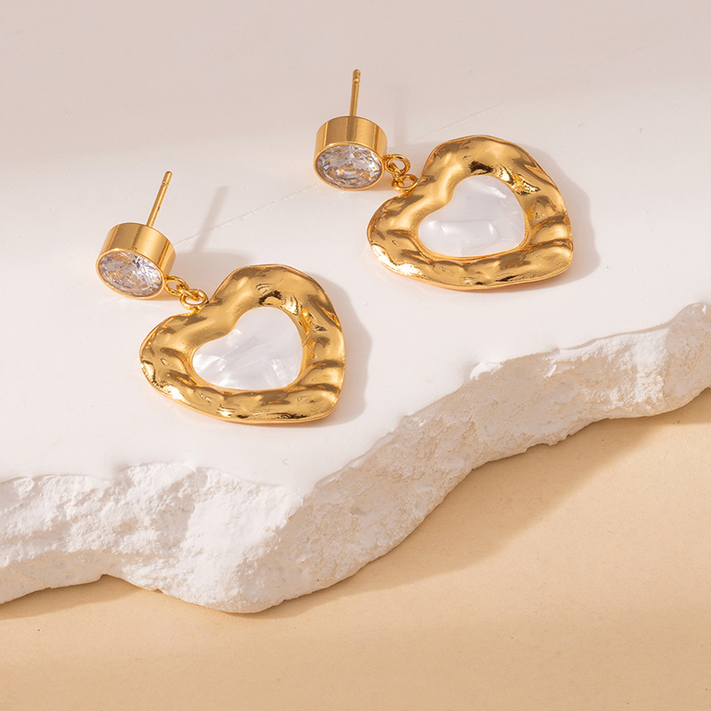 white zirconium wave point love heart stud earrings 1999